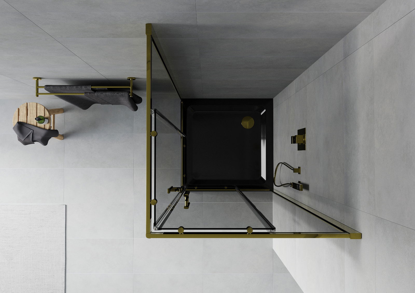 Mexen Rio čtvercový sprchový kout 80 x 80 cm, grafit, zlatý + Flat sprchová vanička, černá- 860-080-080-50-40-4070G