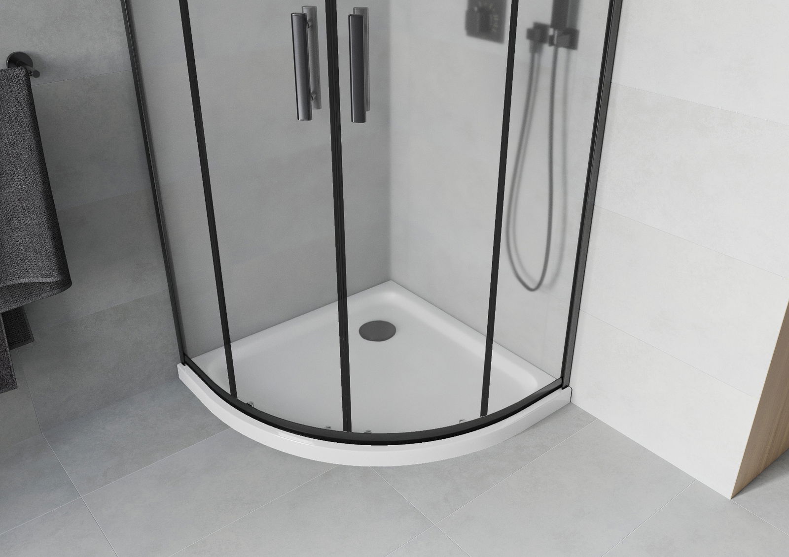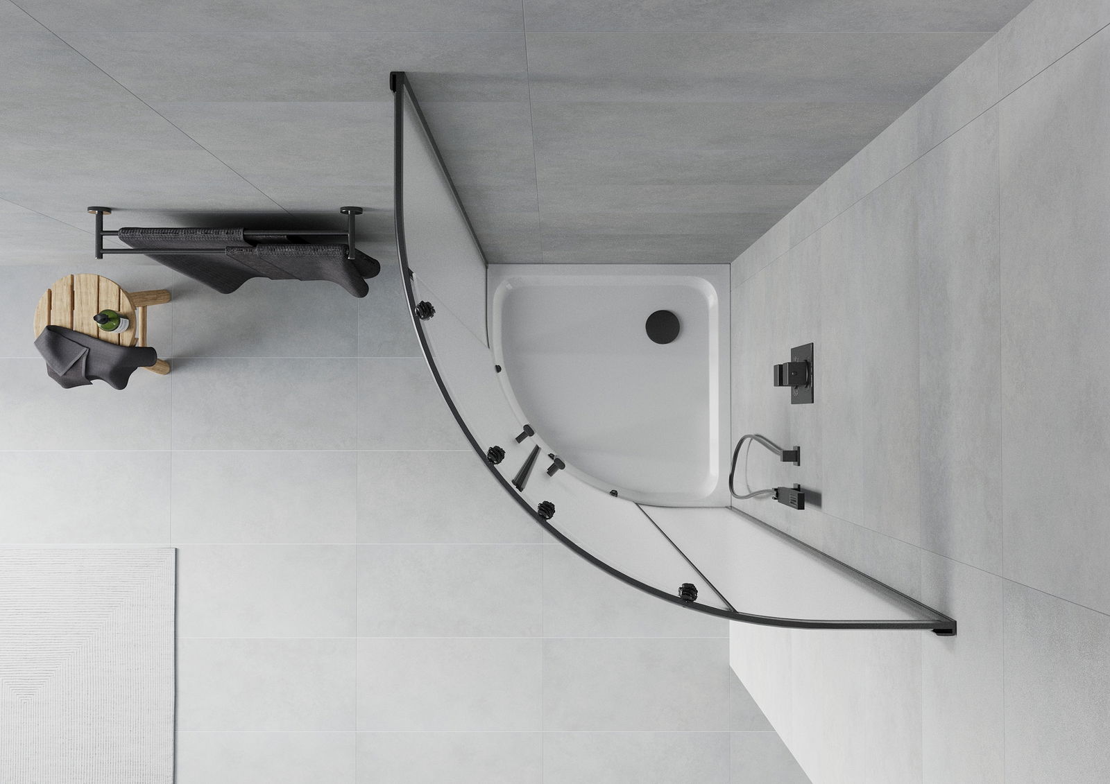 Mexen Rio půlkruhová sprchová kabina 80 x 80 cm, matové sklo, černá + vanička Flat, bílá - 863-080-080-70-30-4110B