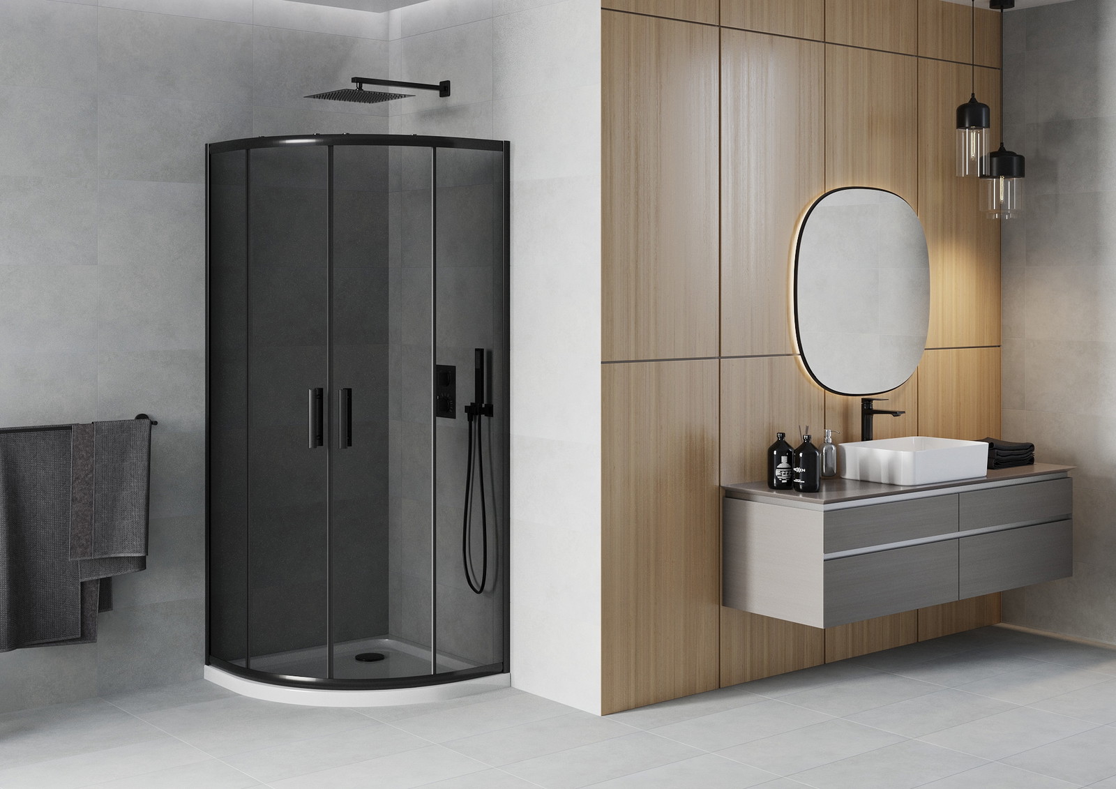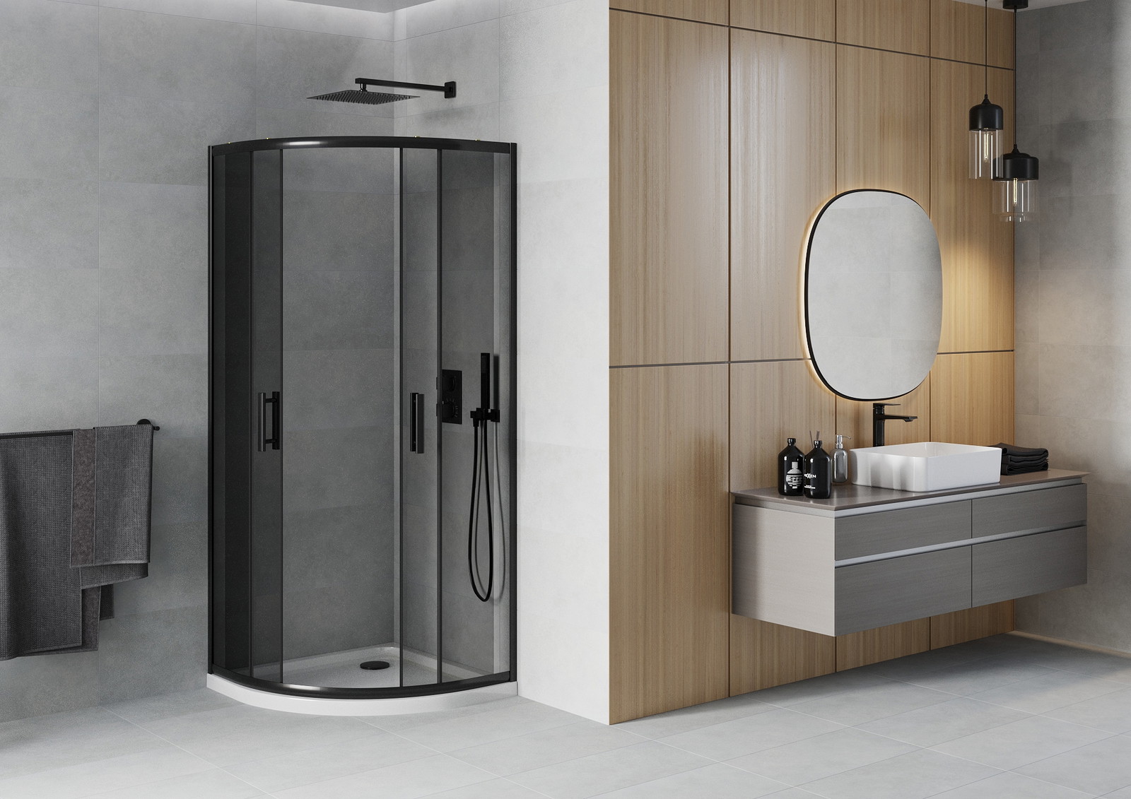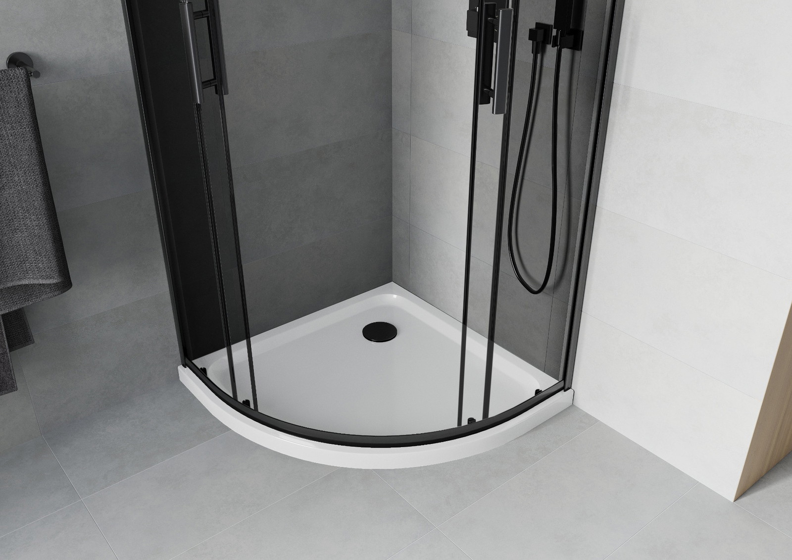 Praktická a pohodlná rukojeť je vyrobena z odolného a trvanlivého kovu. Moderní tvar ve spojení s povrchovou úpravou, která ladí s barvou profilů, dodává celku moderní a stylový vzhled, zdůrazňující estetiku každé koupelny.