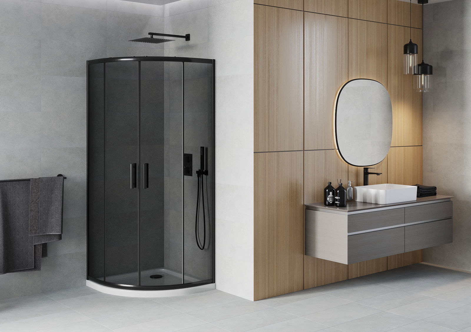 Mexen Rio sprchový kout půlkruhový 90 x 90 cm, grafit, černá + vanička Flat, bílá - 863-090-090-70-40-4110B