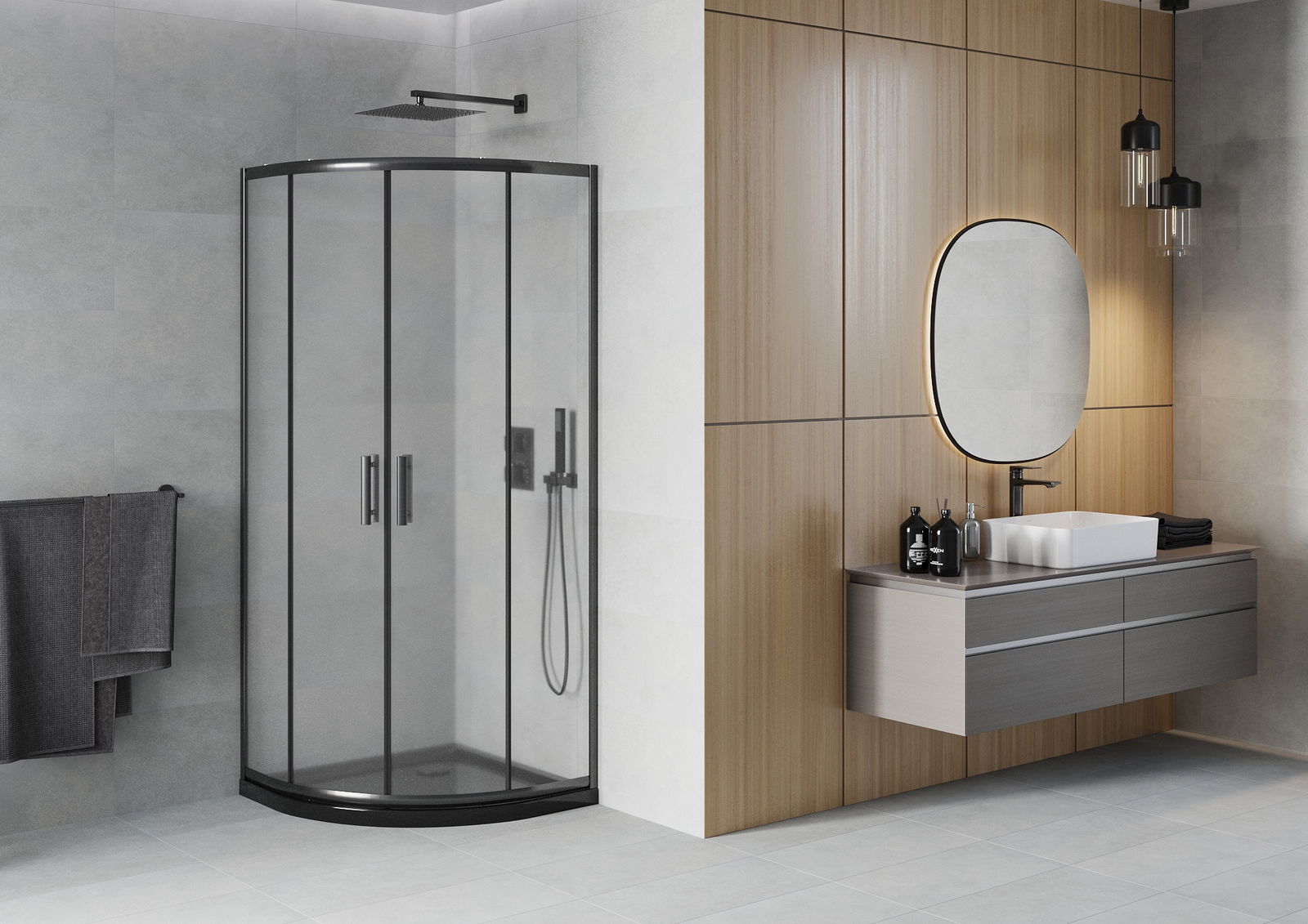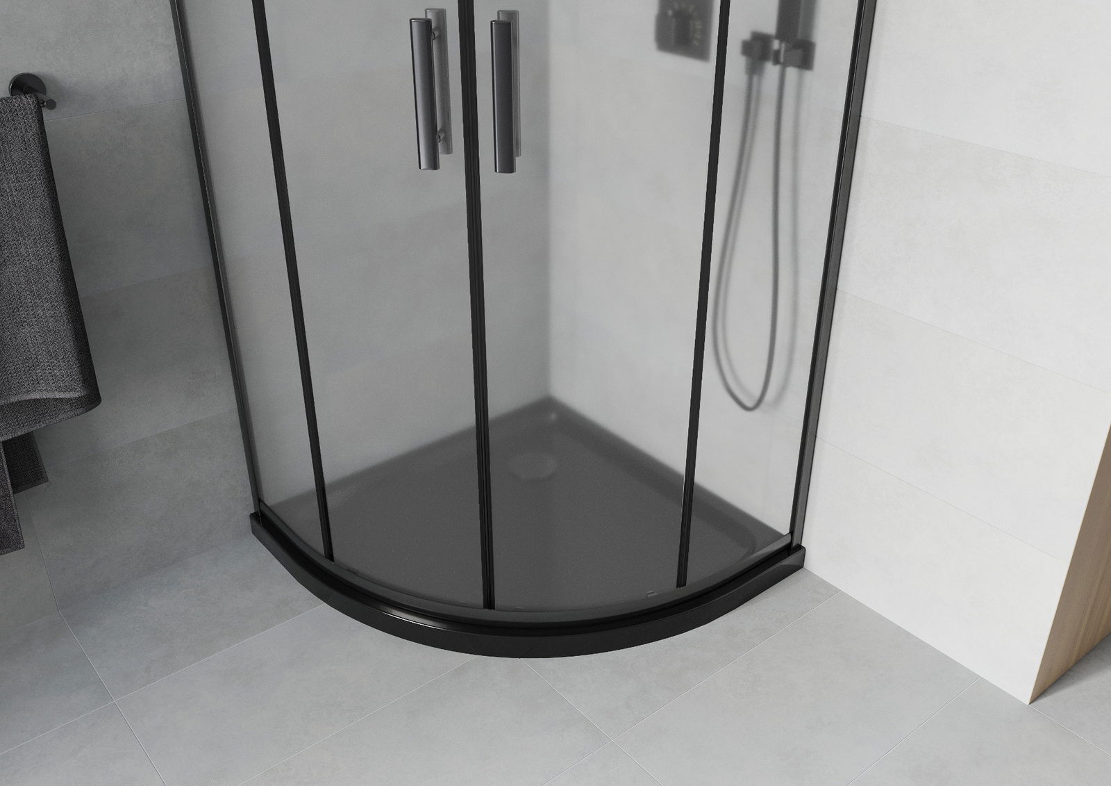 Mexen Rio sprchová kabina půlkruhová 80 x 80 cm, matná, černá + vanička Flat, černá - 863-080-080-70-30-4170B