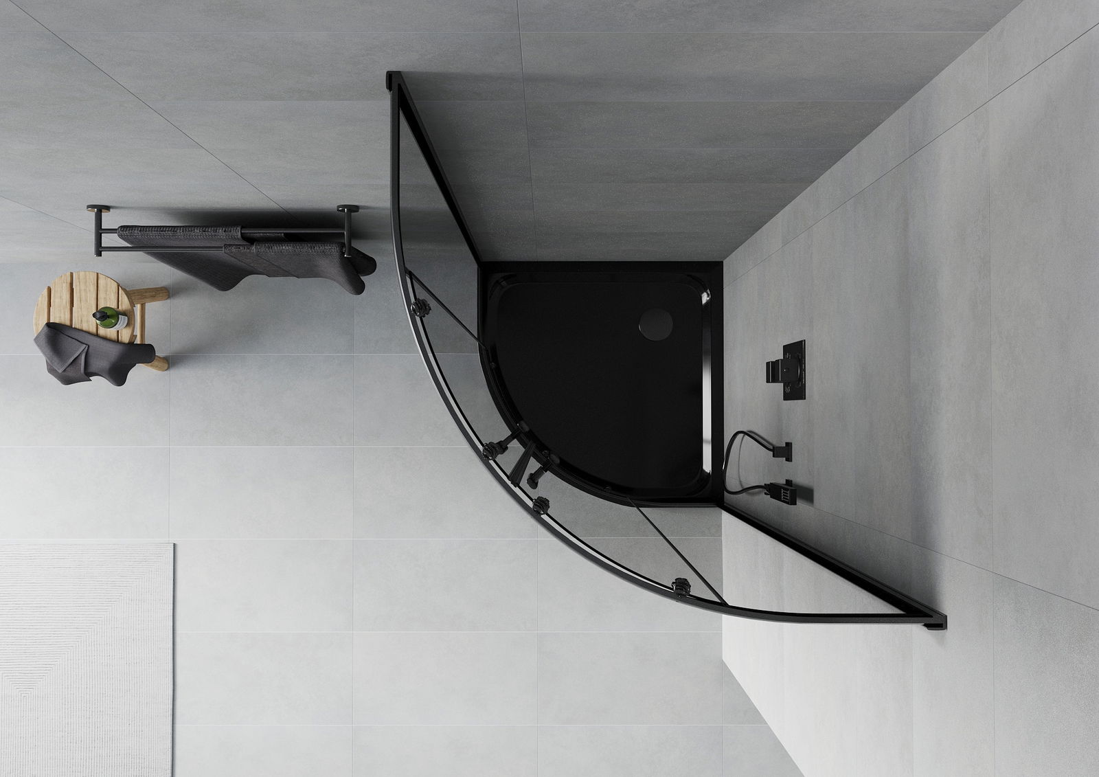Mexen Rio půlkruhová sprchová kabina 80 x 80 cm, grafitová, černá + vanička Flat, černá 863-080-080-70-40-4170B
