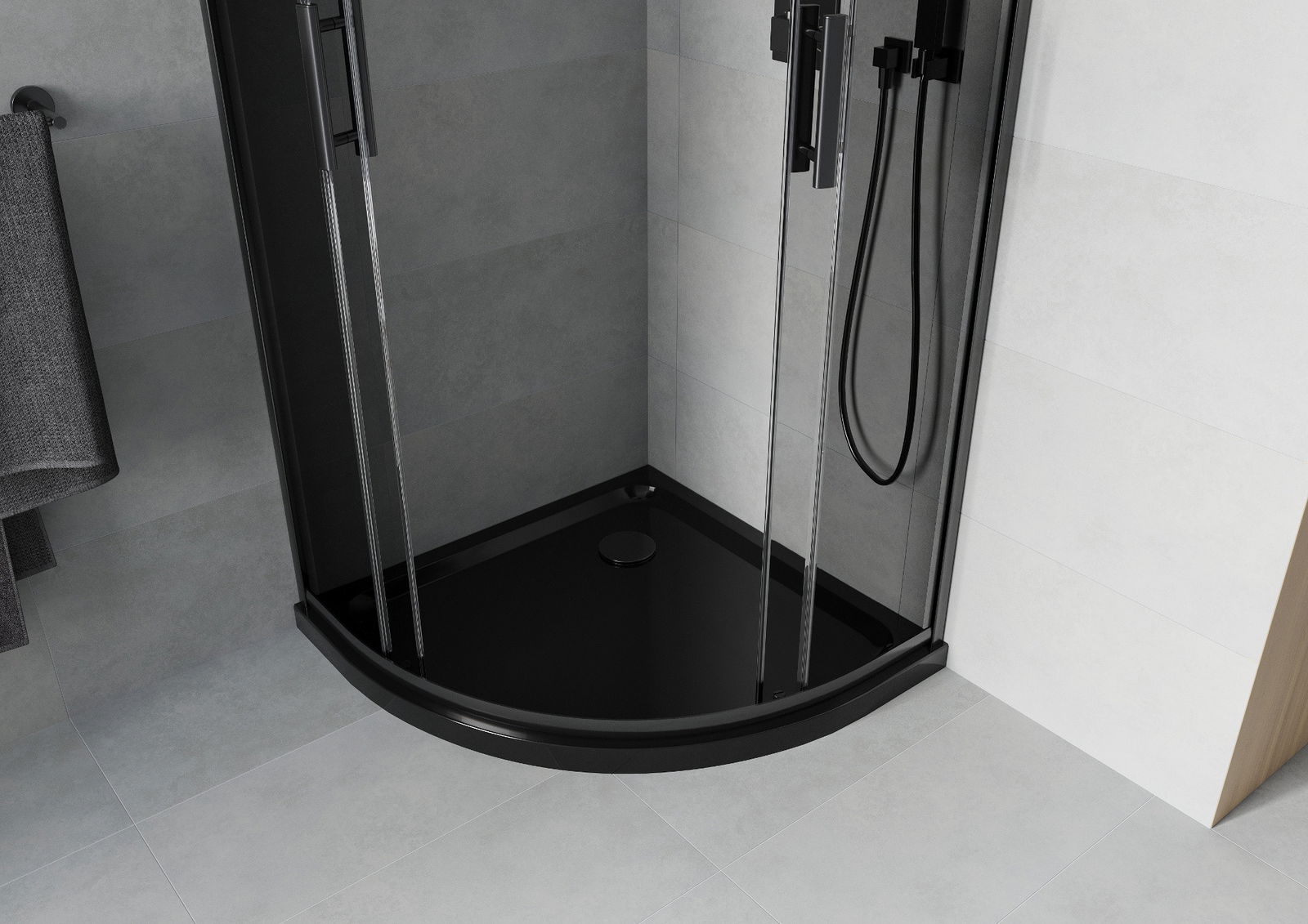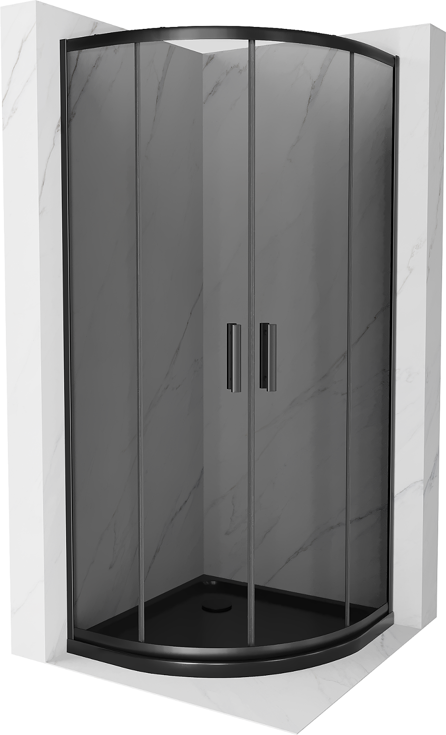 Mexen Rio polokruhová sprchová kabina 90 x 90 cm, grafit, černá + vanička Flat, černá - 863-090-090-70-40-4170B