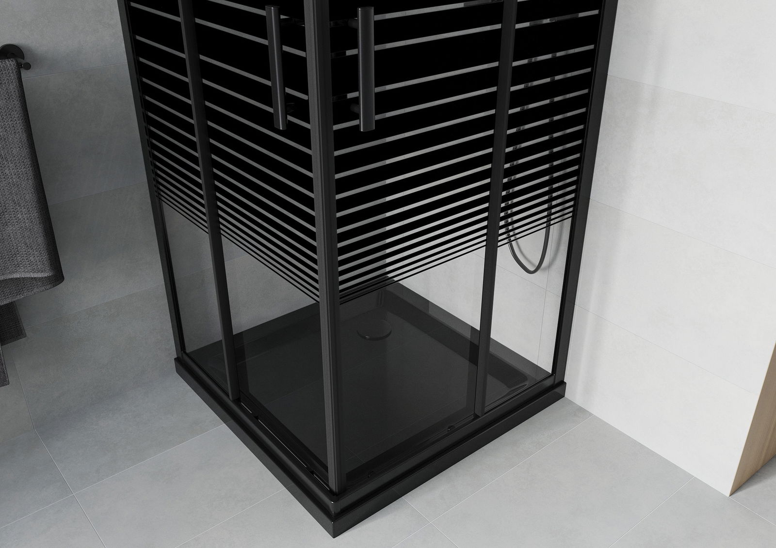 Praktická a pohodlná rukojeť je vyrobena z odolného a trvanlivého kovu. Moderní tvar ve spojení s povrchovou úpravou, která ladí s barvou profilů, dodává celku moderní a stylový vzhled, zdůrazňující estetiku každé koupelny.