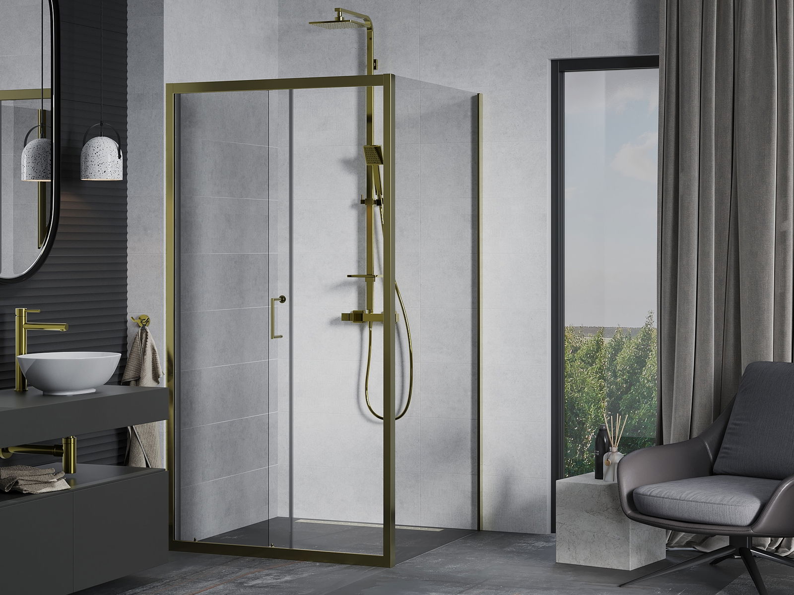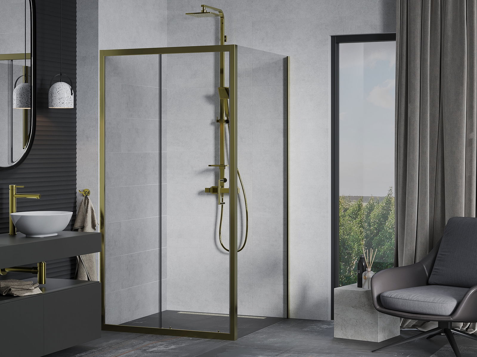 Mexen Apia sprchový kout posuvný 90 x 90 cm, transparentní, zlatý - 840-090-090-50-00