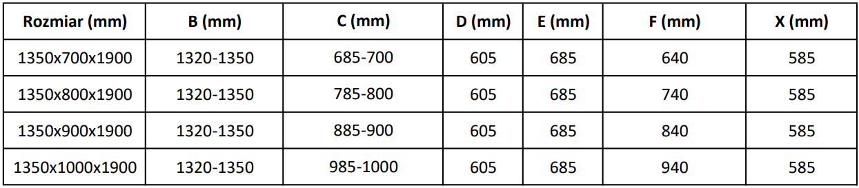 Velikost: 135x100 cm (dveře 135 cm. stěna 100 cm)