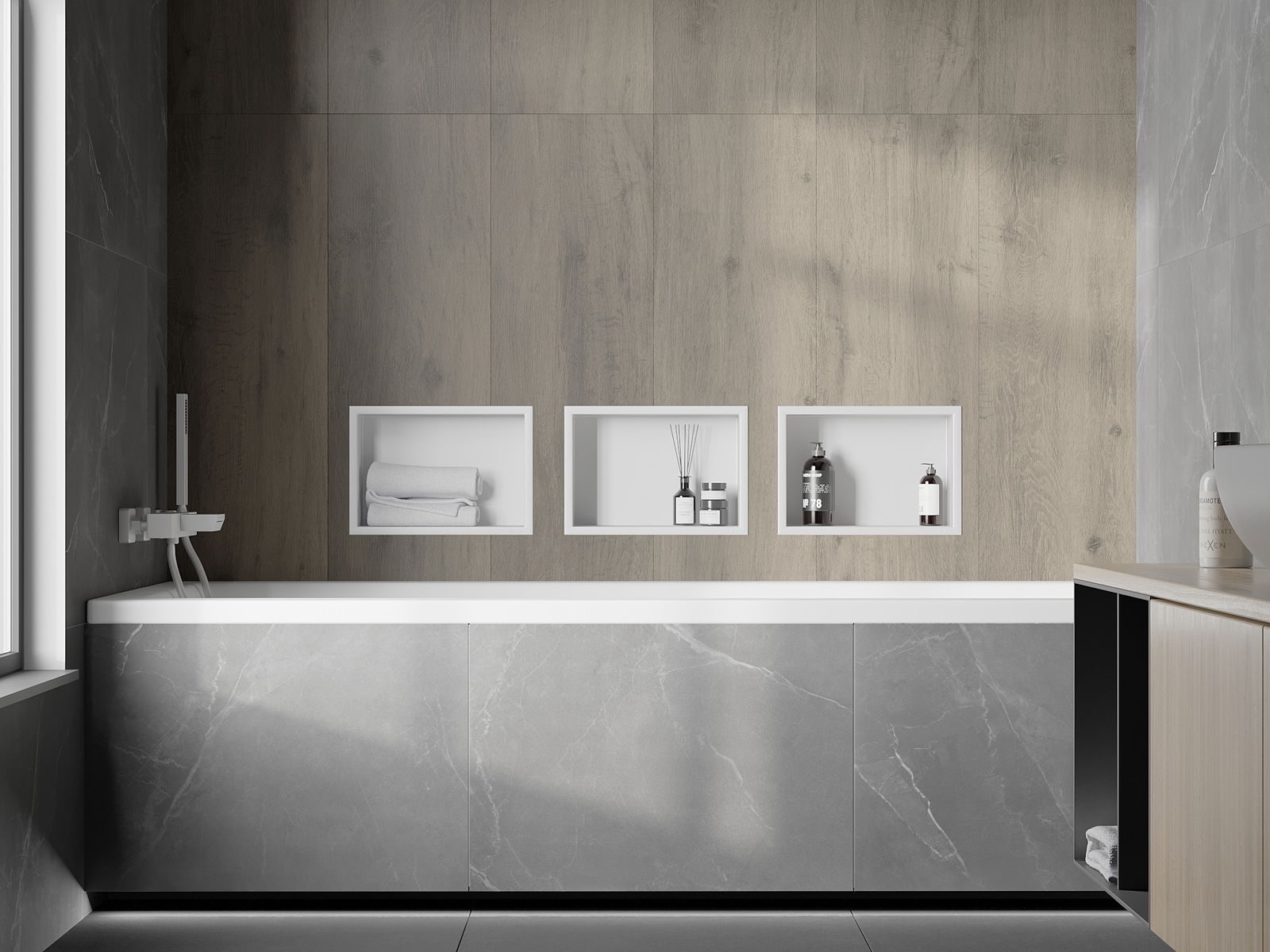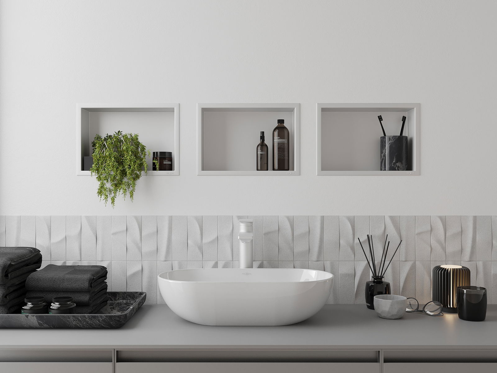 Možnost montáže ve zdi nebo ve speciálně připravené konstrukci. Je to mimořádně moderní a funkční řešení, umožňující ušetřit prostor a přizpůsobit produkt estetice interiéru a vytvořit jednotnou kompozici.