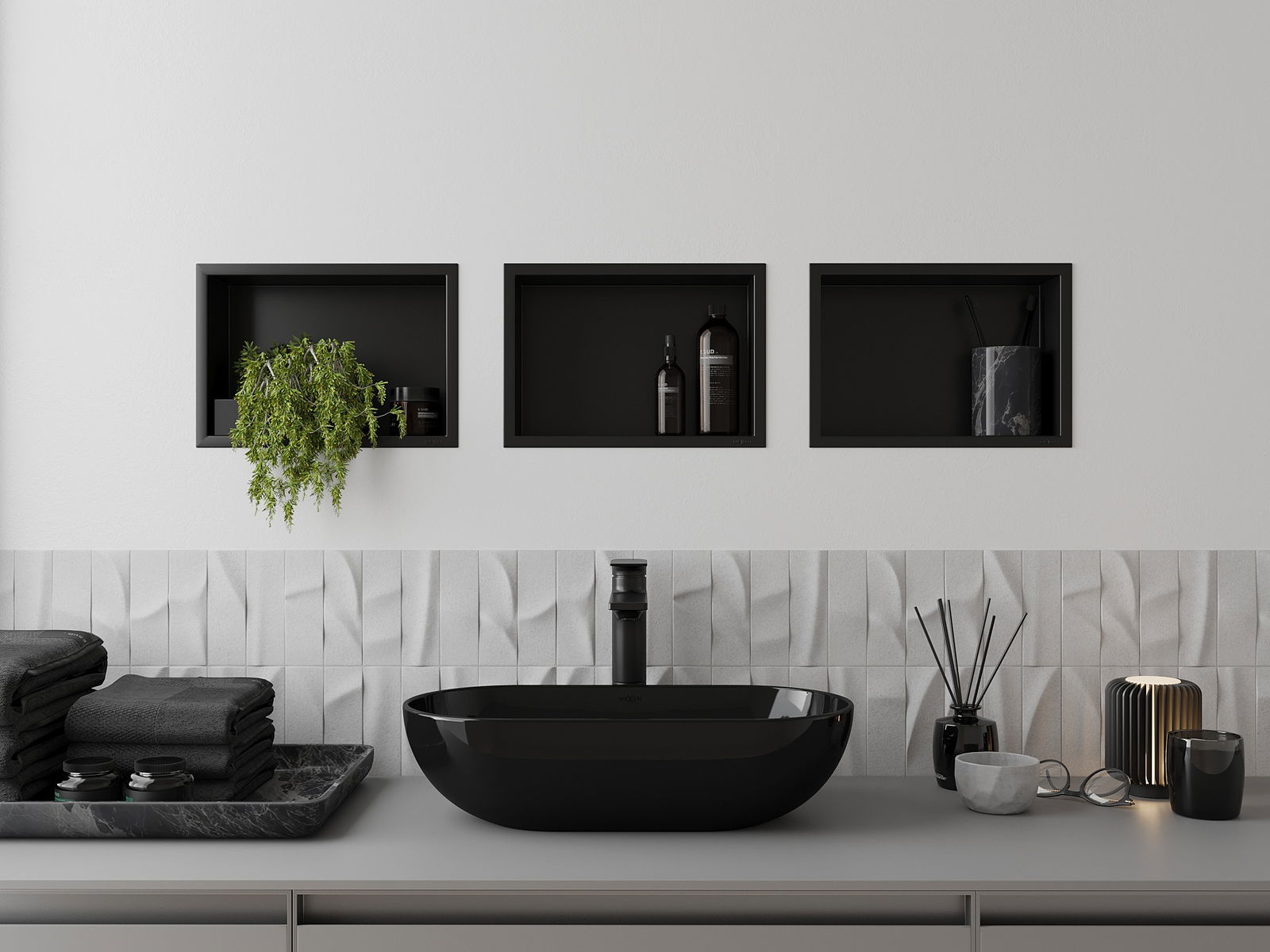 Možnost montáže ve zdi nebo ve speciálně připravené konstrukci. Je to mimořádně moderní a funkční řešení, umožňující ušetřit prostor a přizpůsobit produkt estetice interiéru a vytvořit jednotnou kompozici.