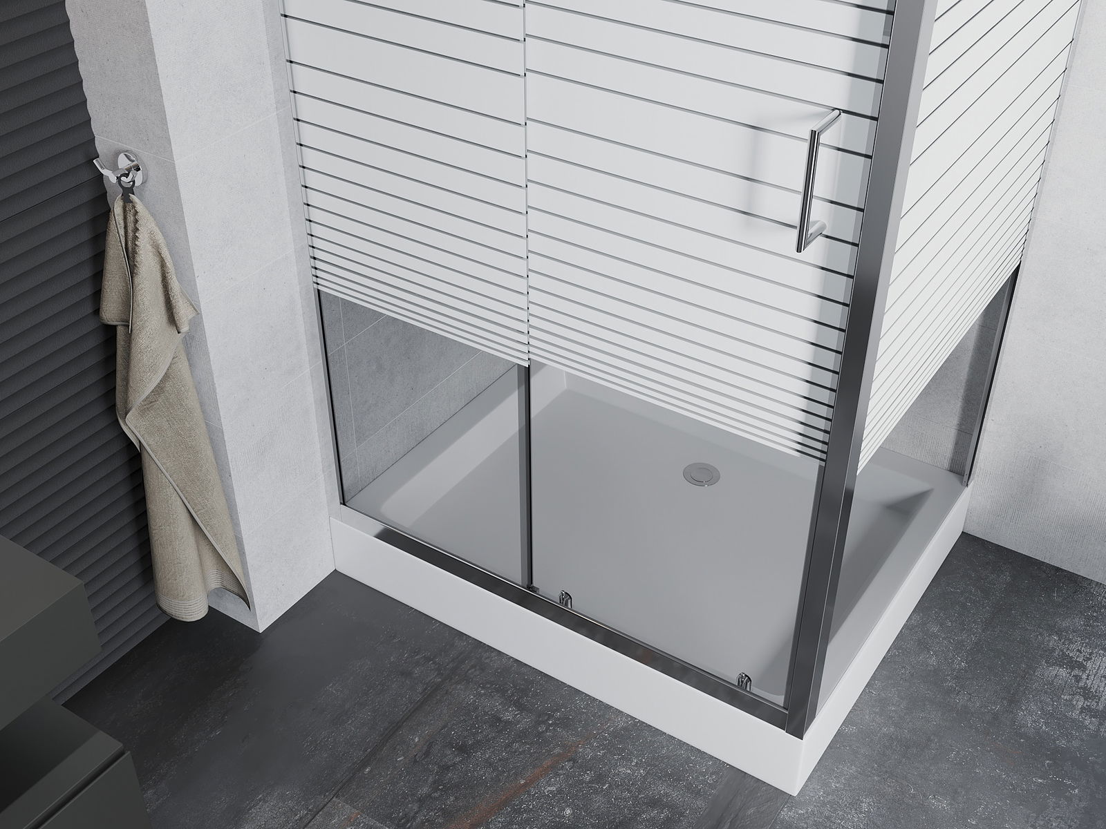Mexen Apia posuvná sprchová kabina 120 x 80 cm, bílé pruhy, chrom + vanička Rio - 840-120-080-01-20-4510