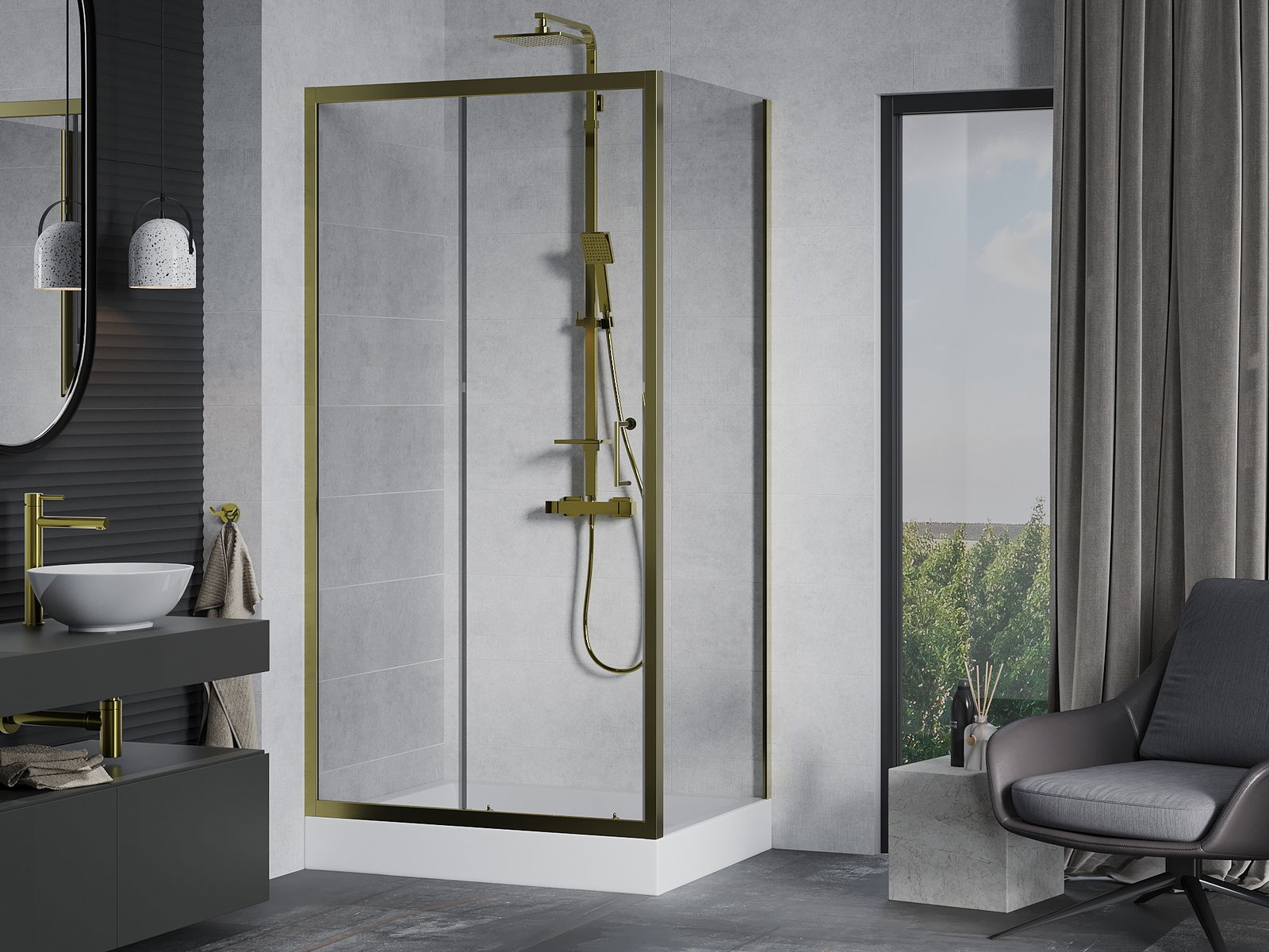 Mexen Apia sprchový kout posuvný 120 x 90 cm, transparentní, zlatý + sprchová vanička Rio - 840-120-090-50-00-4510