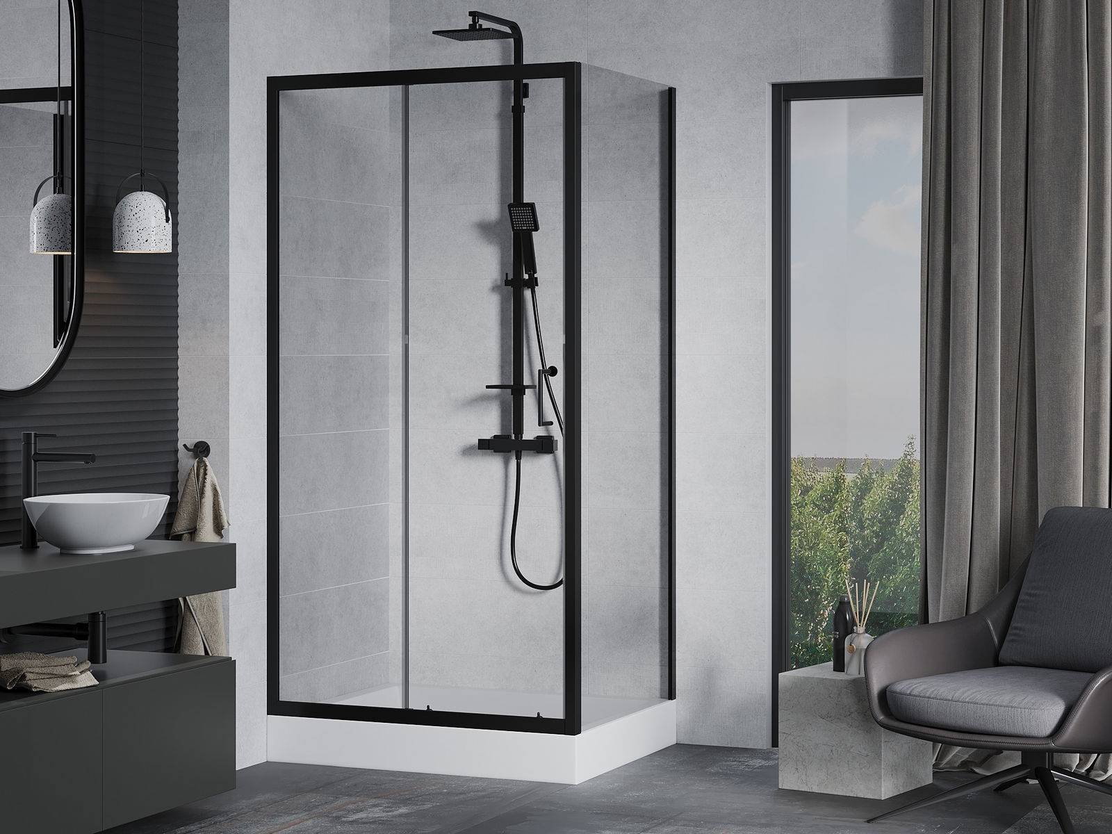 Mexen Apia posuvná sprchová kabina 120 x 90 cm, transparentní, černá + vanička Rio - 840-120-090-70-00-4510