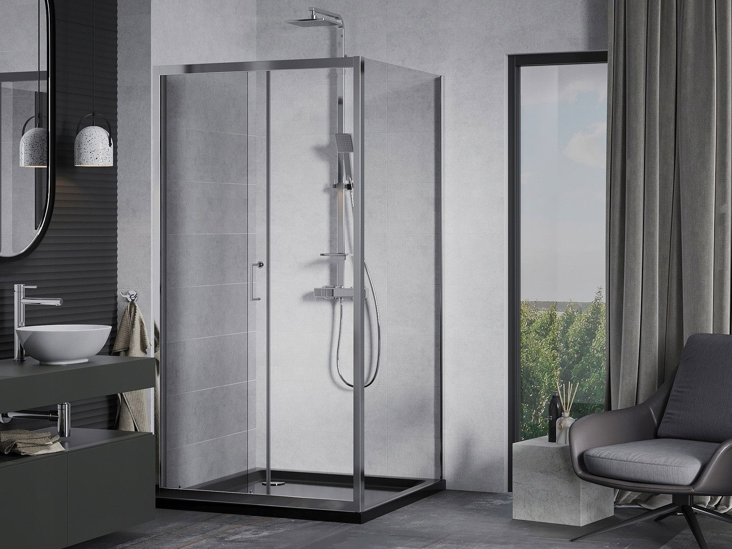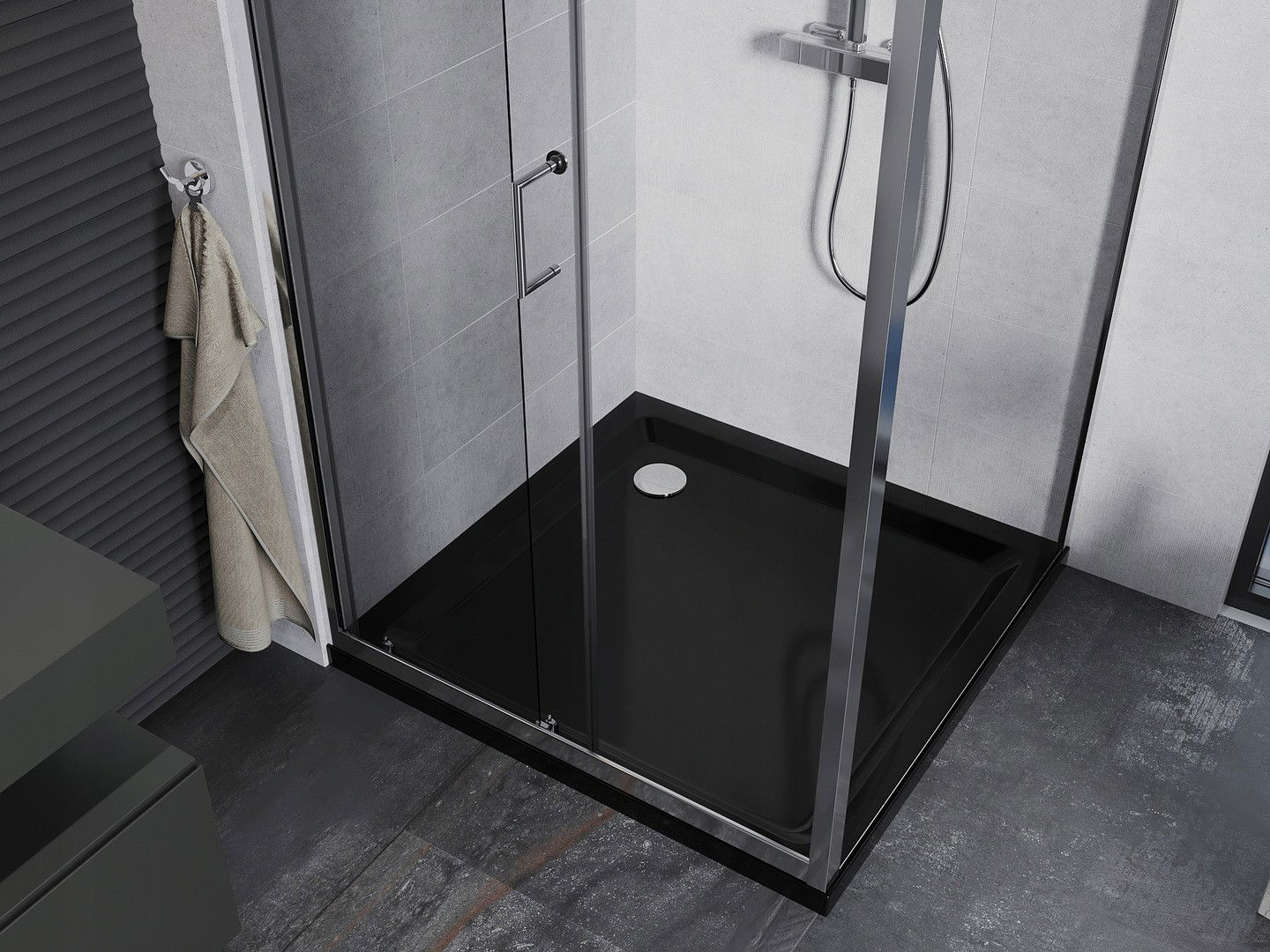 Praktická a pohodlná rukojeť je vyrobena z odolného a trvanlivého kovu. Moderní tvar ve spojení s povrchovou úpravou, která ladí s barvou profilů, dodává celku moderní a stylový vzhled, zdůrazňující estetiku každé koupelny.