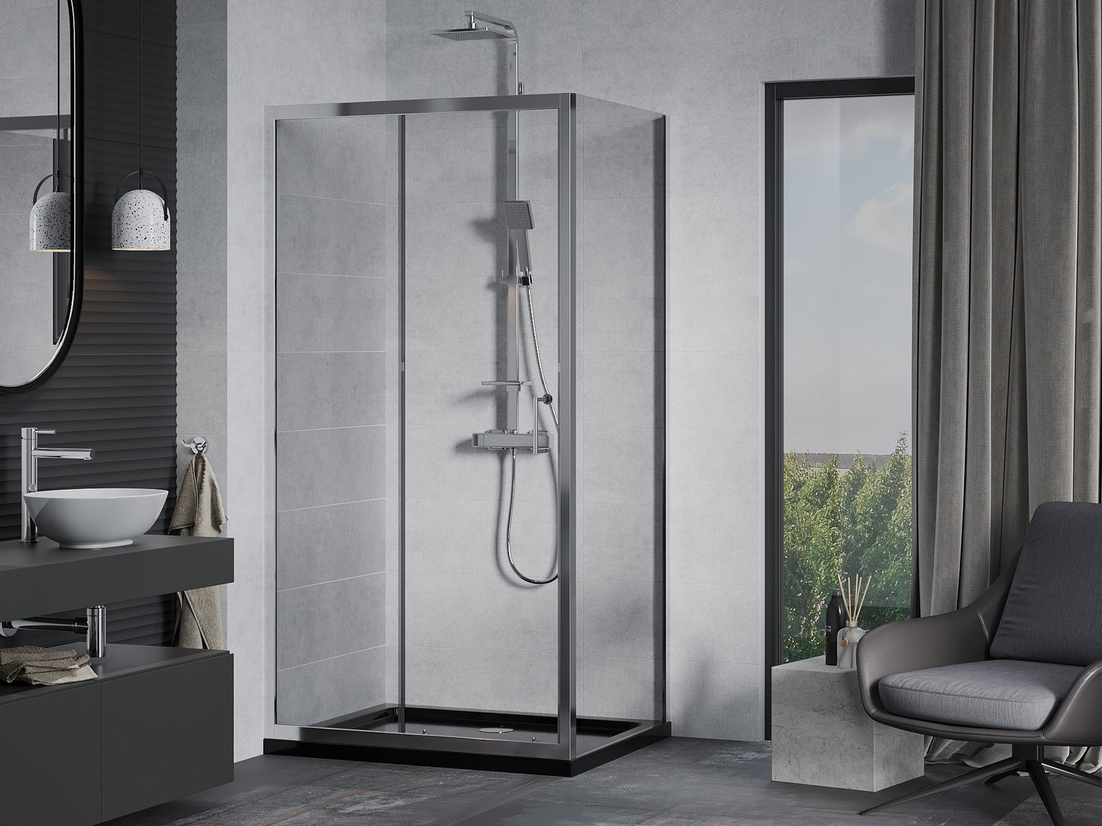 Mexen Apia sprchový kout posuvný 100 x 80 cm, transparentní, chrom + vanička Flat, černá - 840-100-080-01-00-4070