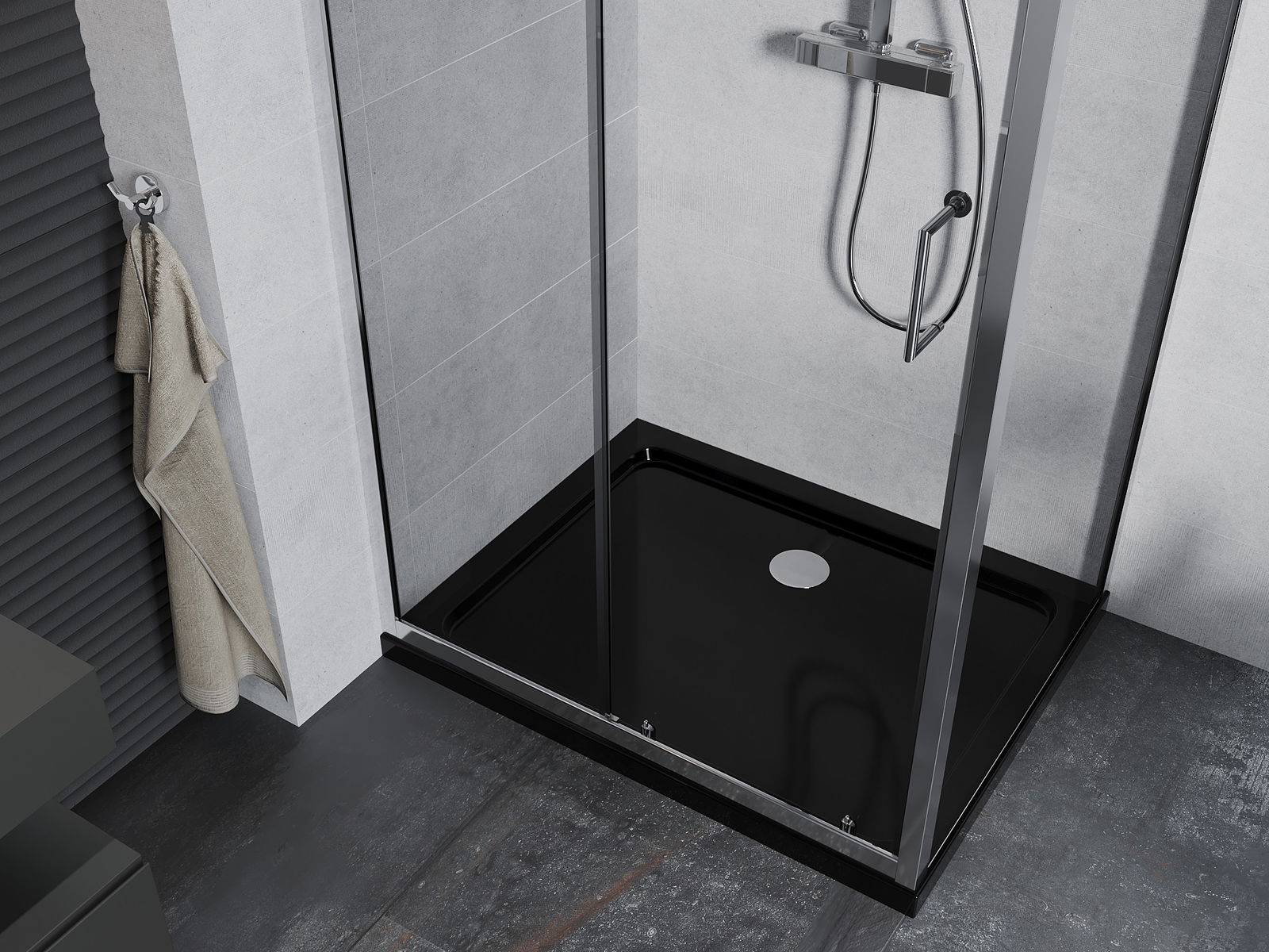 Mexen Apia sprchová kabina posuvná 110 x 90 cm, průhledná, chrom + sprchová vanička Flat, černá - 840-110-090-01-00-4070
