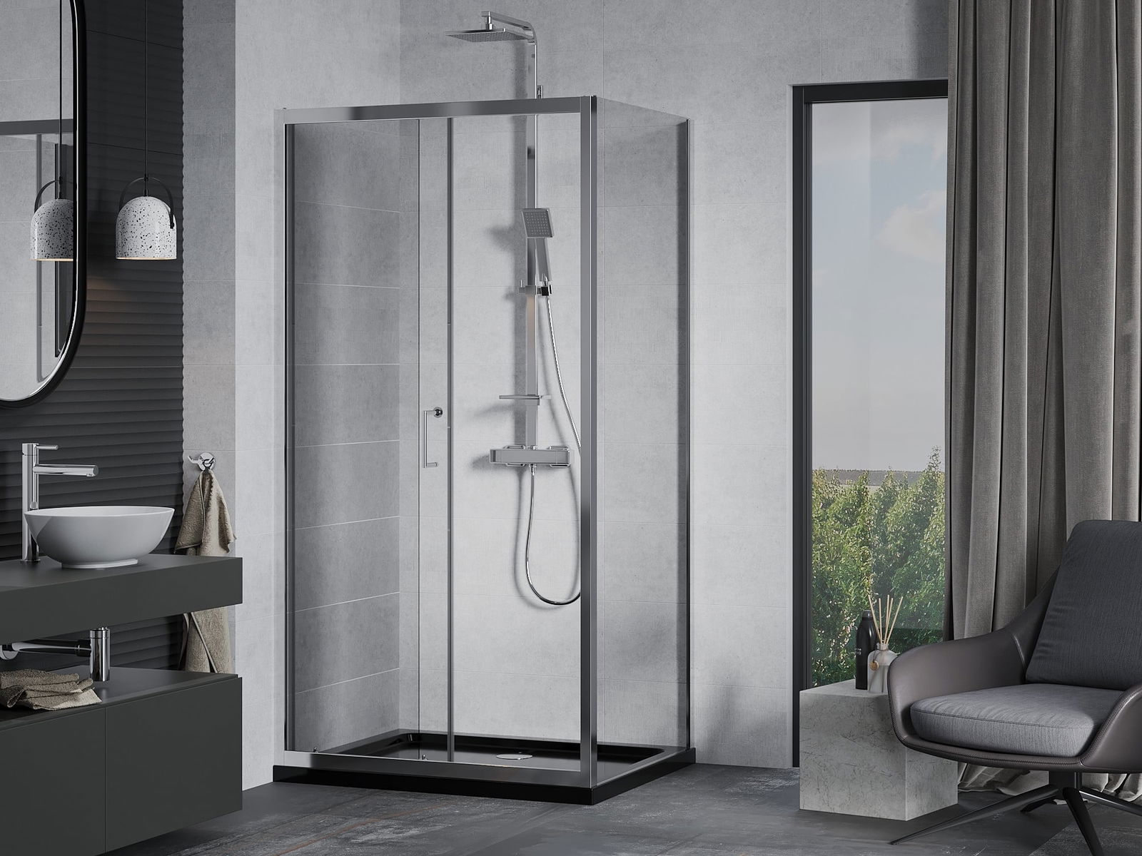 Praktická a pohodlná rukojeť je vyrobena z odolného a trvanlivého kovu. Moderní tvar ve spojení s povrchovou úpravou, která ladí s barvou profilů, dodává celku moderní a stylový vzhled, zdůrazňující estetiku každé koupelny.