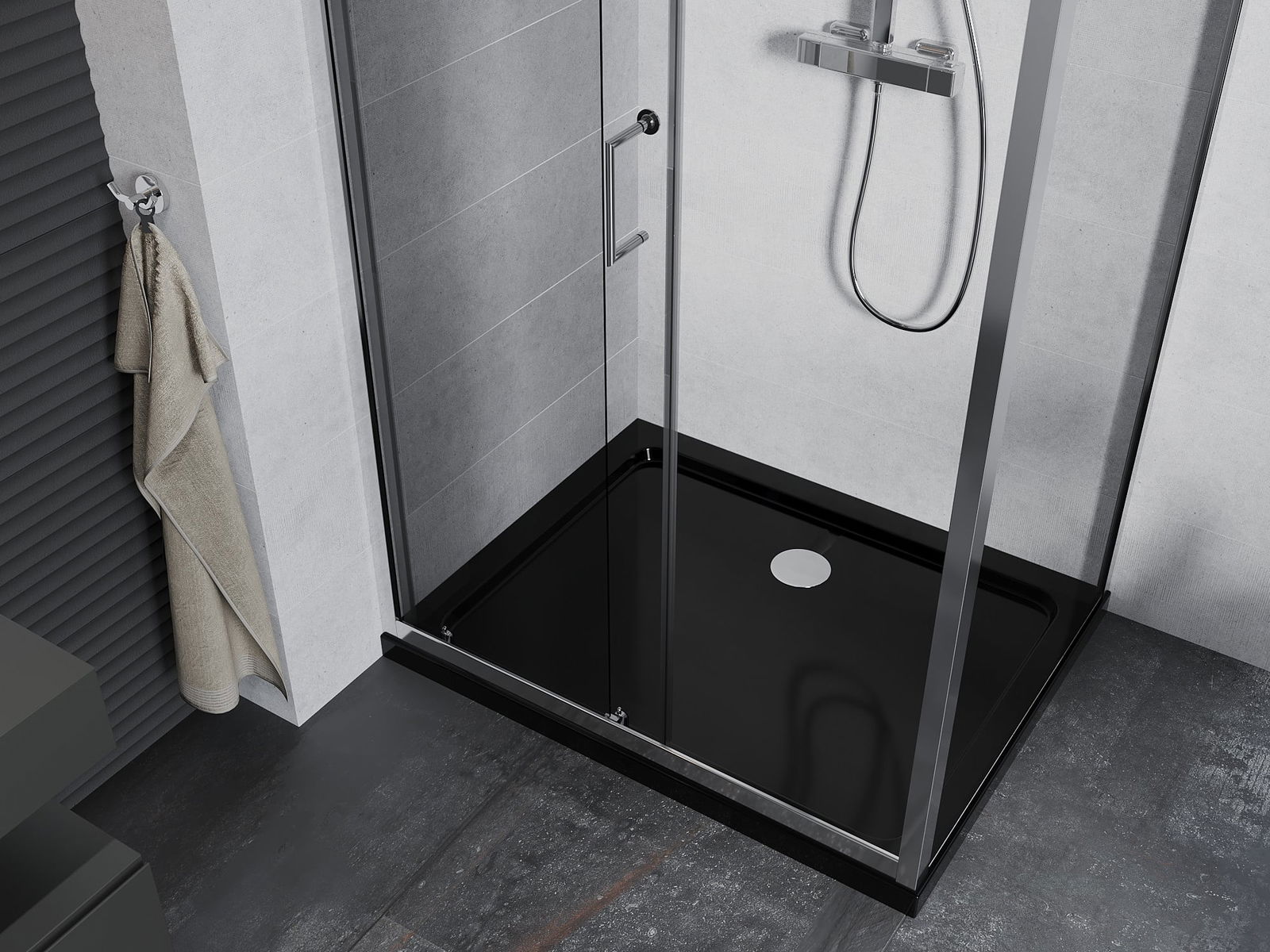 Mexen Apia posuvná sprchová kabina 130 x 80 cm, transparentní, chrom + sprchová vanička Flat, černá - 840-130-080-01-00-4070