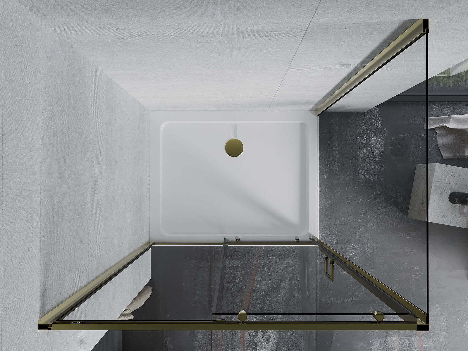 Mexen Apia sprchový kout posuvný 110 x 70 cm, transparentní, zlatý + vanička Flat, bílá - 840-110-070-50-00-4010G