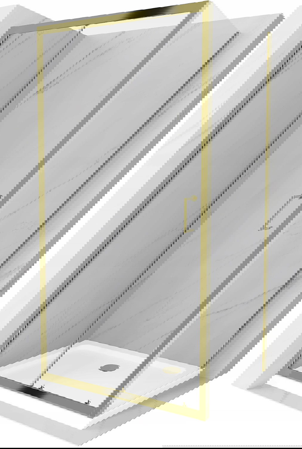 Mexen Apia sprchový kout posuvný 140 x 90 cm, transparentní, zlatý + sprchová vanička Flat, bílá- 840-140-090-50-00-4010G