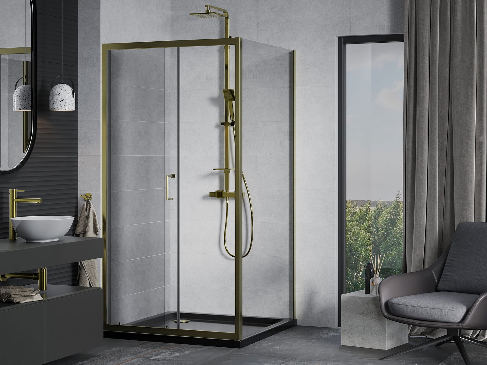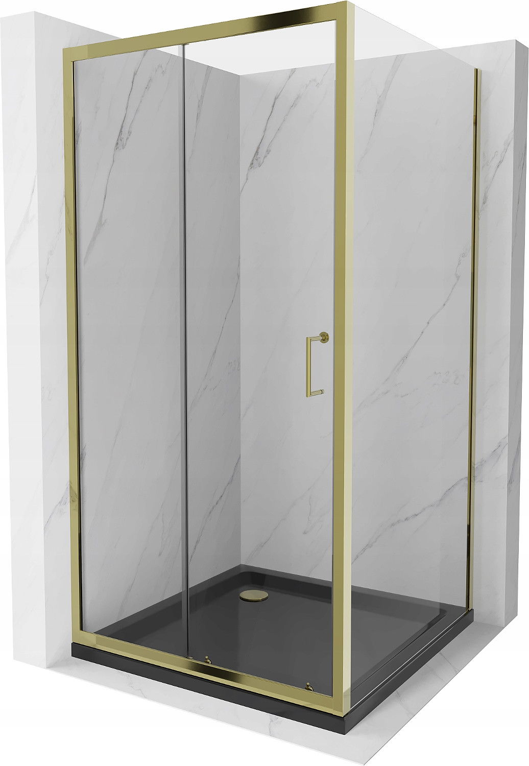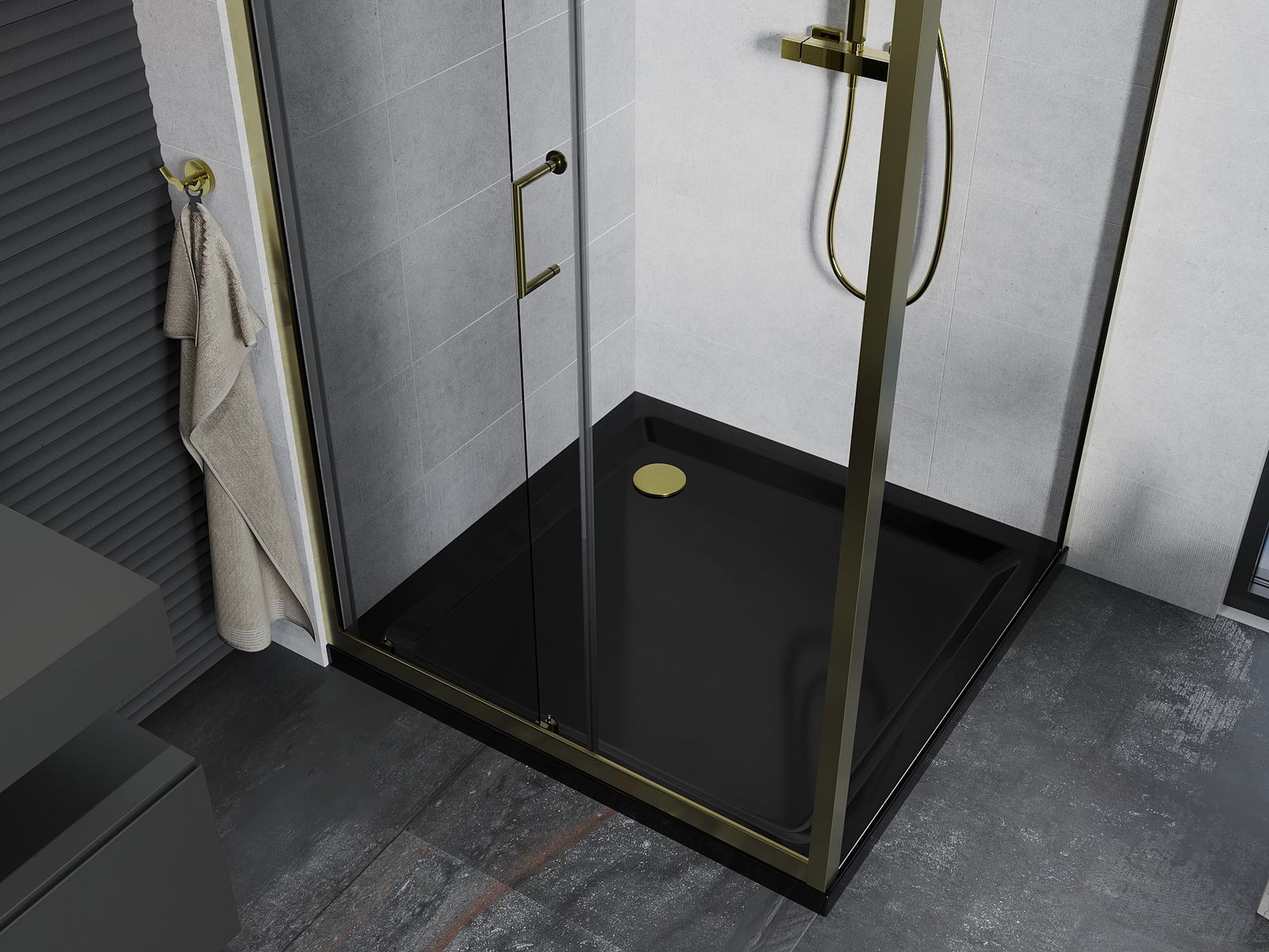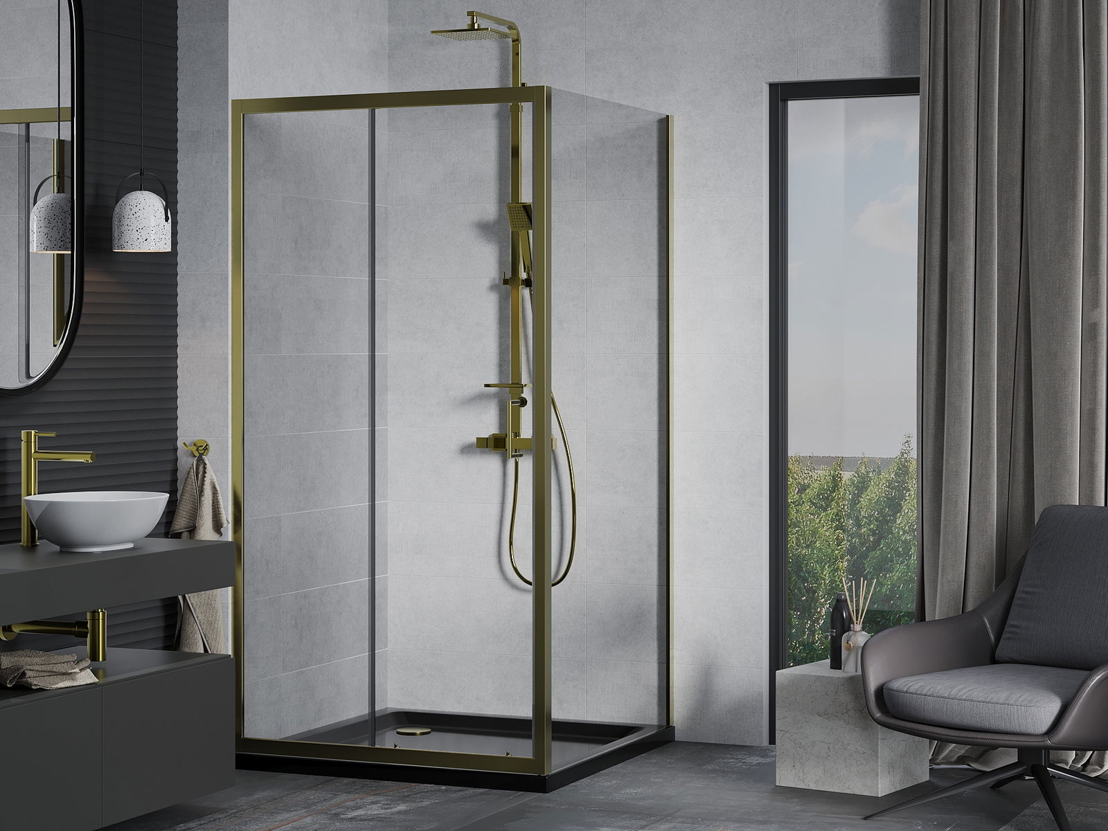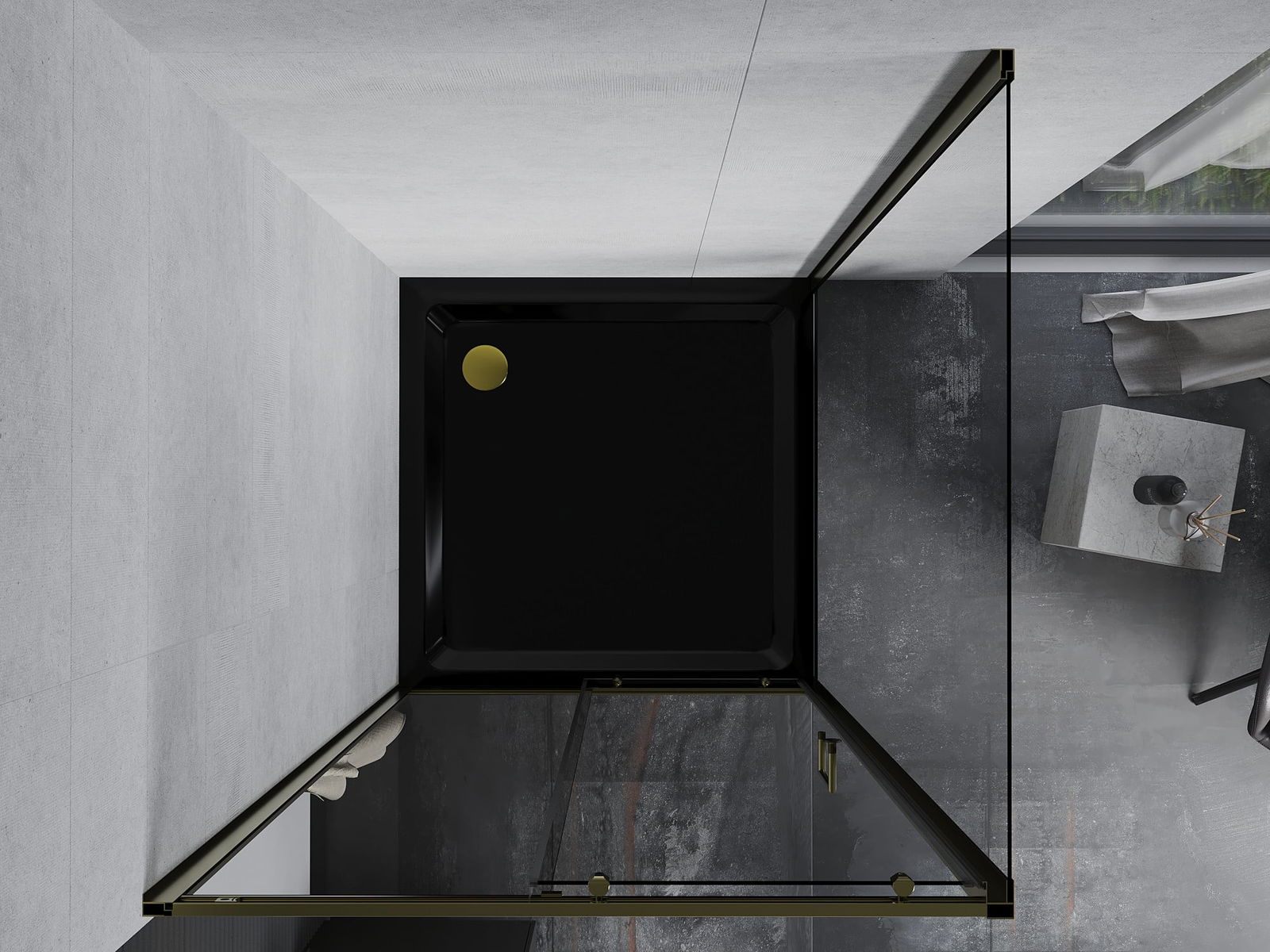 Mexen Apia sprchový kout posuvný 90 x 90 cm, transparentní, zlatý + vanička Flat, černá - 840-090-090-50-00-4070G