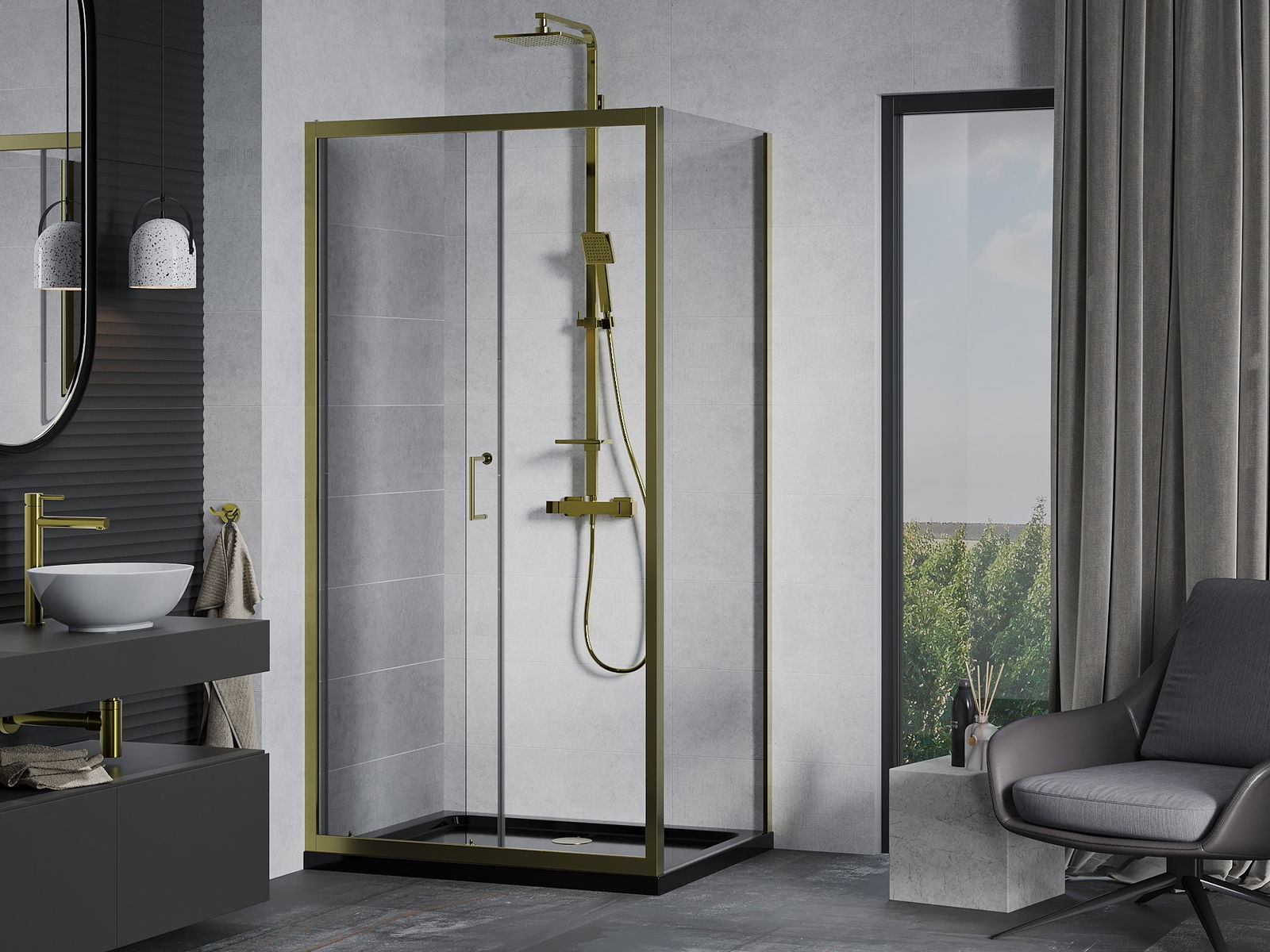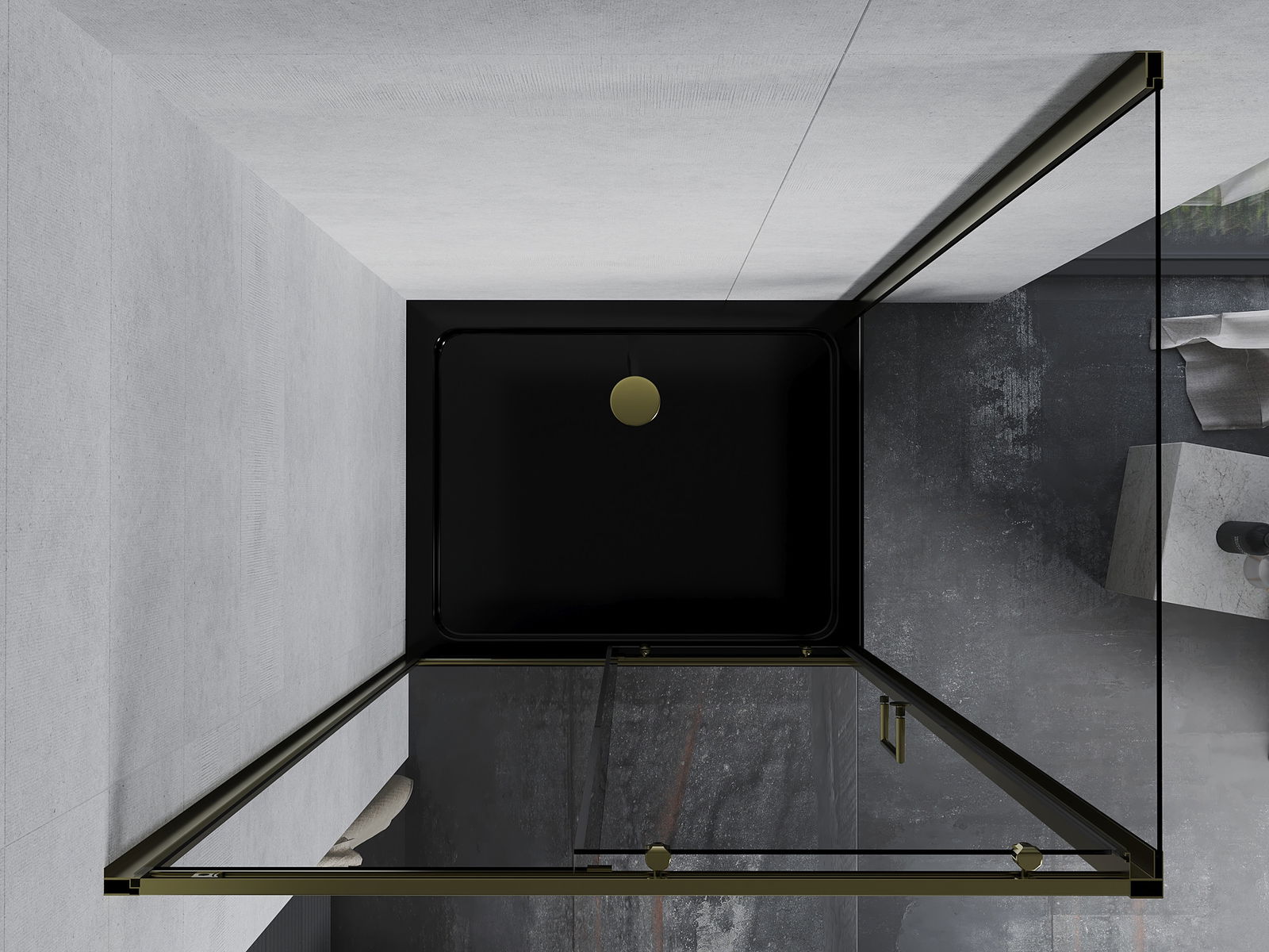 Mexen Apia sprchový kout posuvný 120 x 100 cm, transparentní, zlatý + sprchová vanička Flat, černá - 840-120-100-50-00-4070G