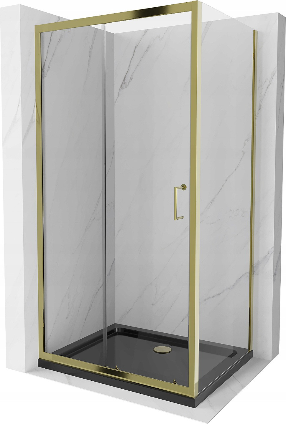 Mexen Apia posuvná sprchová kabina 130 x 70 cm, transparentní, zlatá + sprchová vanička Flat, černá