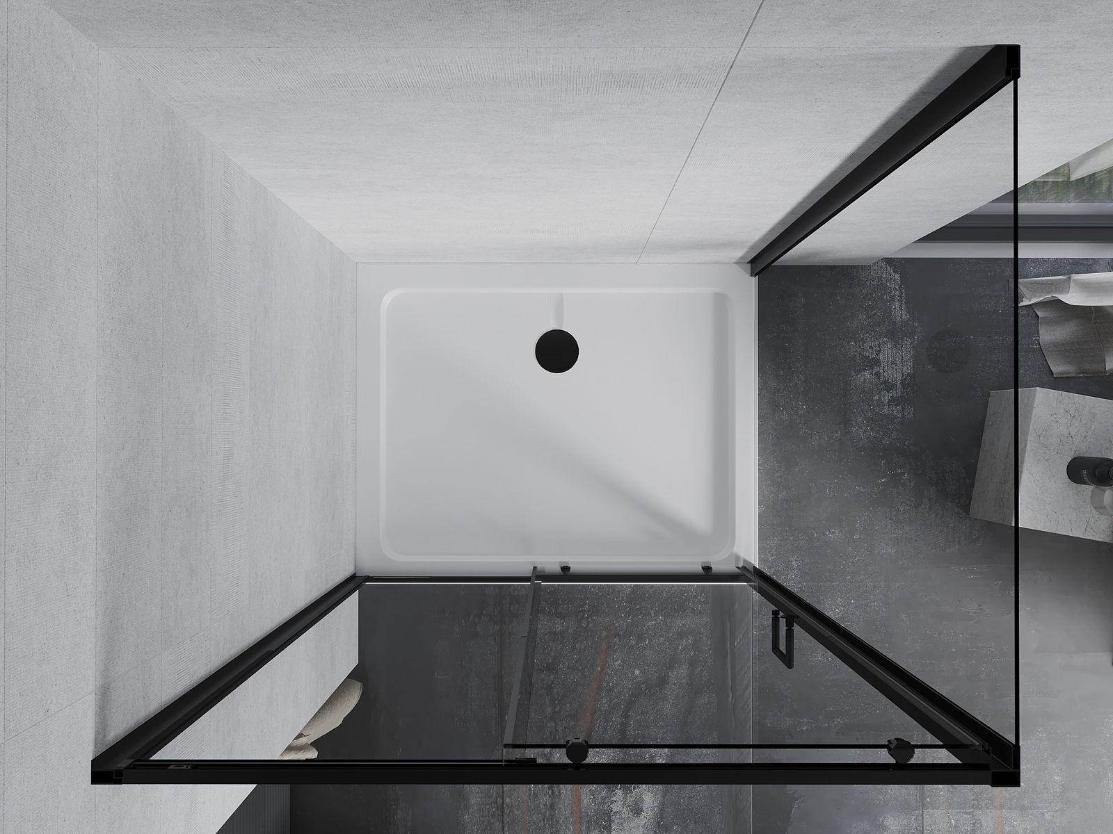 Mexen Apia sprchový kout posuvný 110 x 90 cm, transparentní, černý + vanička Flat, bílá - 840-110-090-70-00-4010B