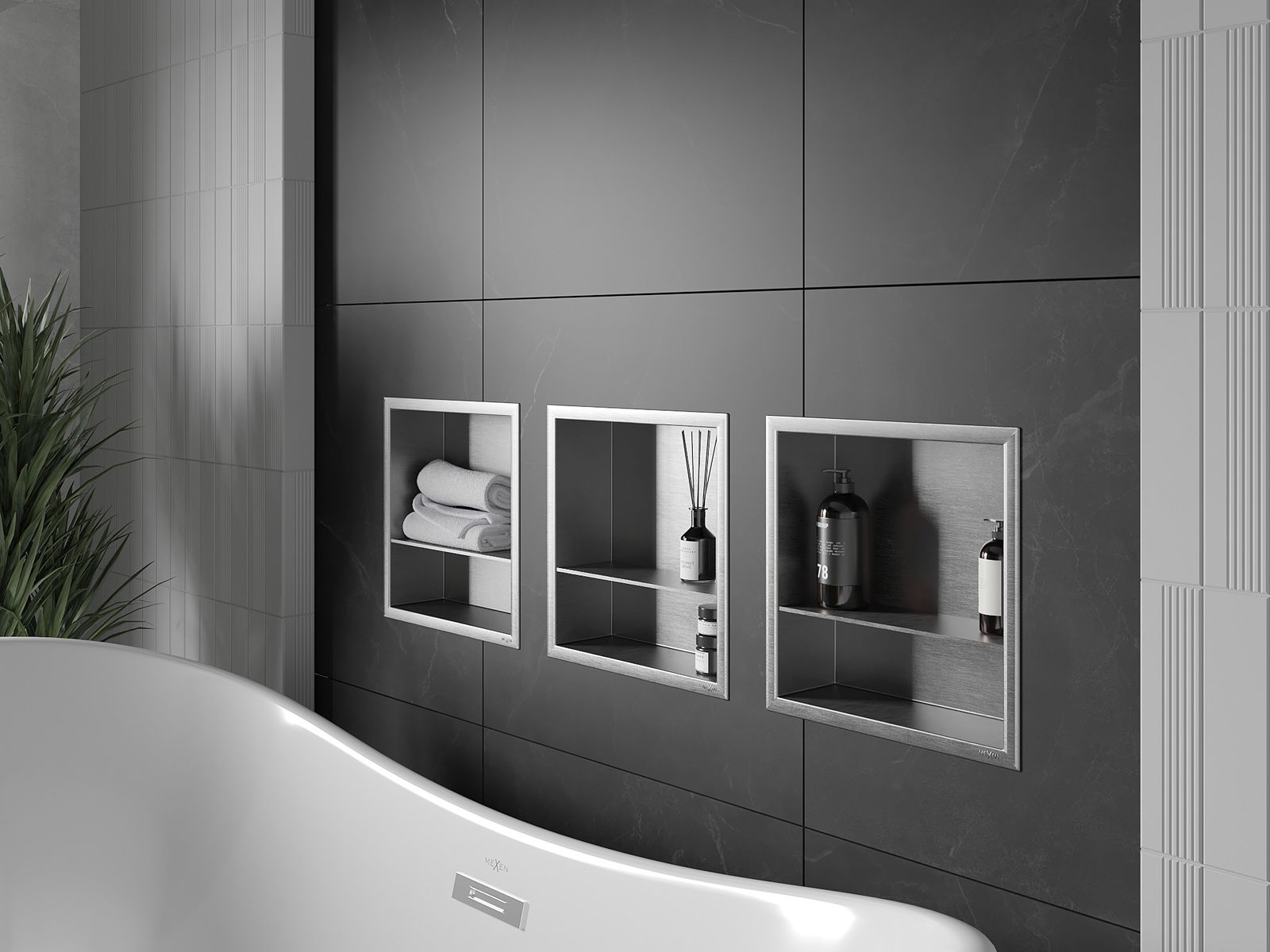 Možnost montáže ve zdi nebo ve speciálně připravené konstrukci. Je to mimořádně moderní a funkční řešení, umožňující ušetřit prostor a přizpůsobit produkt estetice interiéru a vytvořit jednotnou kompozici.