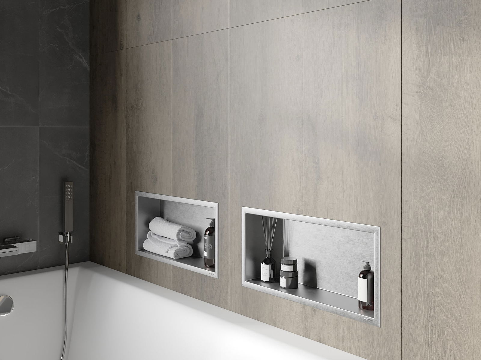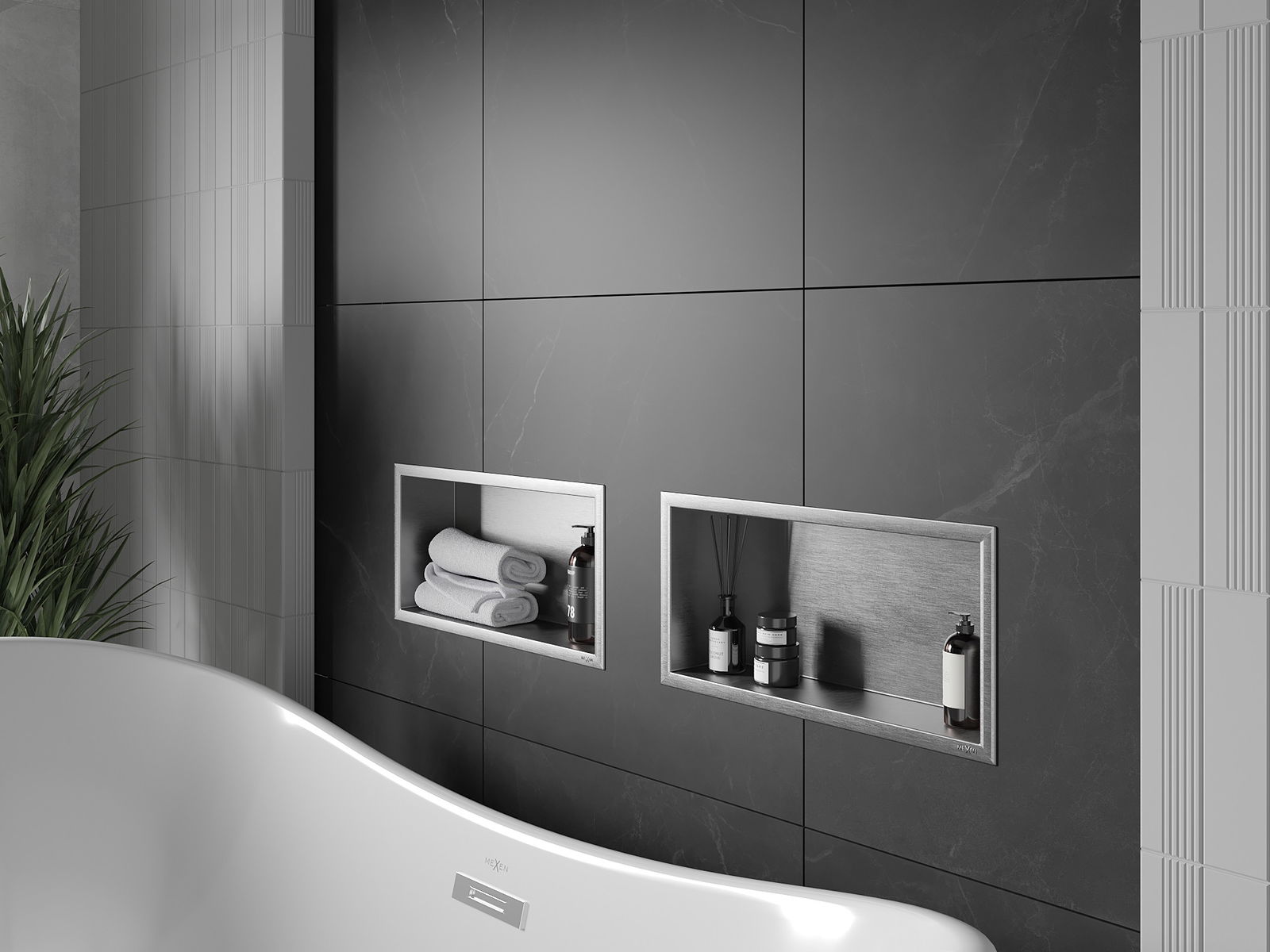 Mexen X-Wall-R vestavěná polička s límcem 45 x 20 cm, inox - 1910452010