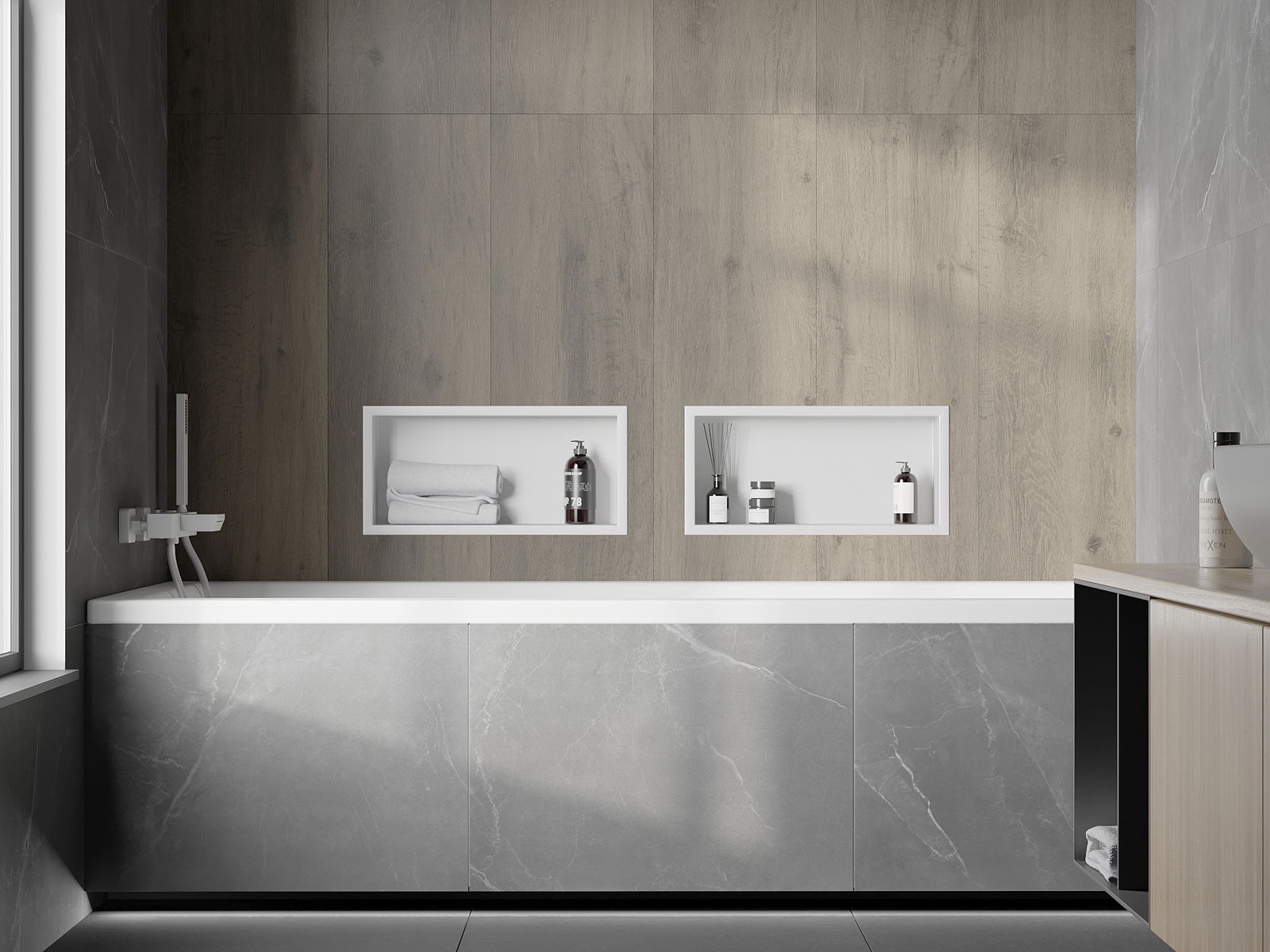 Možnost montáže ve zdi nebo ve speciálně připravené konstrukci. Je to mimořádně moderní a funkční řešení, umožňující ušetřit prostor a přizpůsobit produkt estetice interiéru a vytvořit jednotnou kompozici.