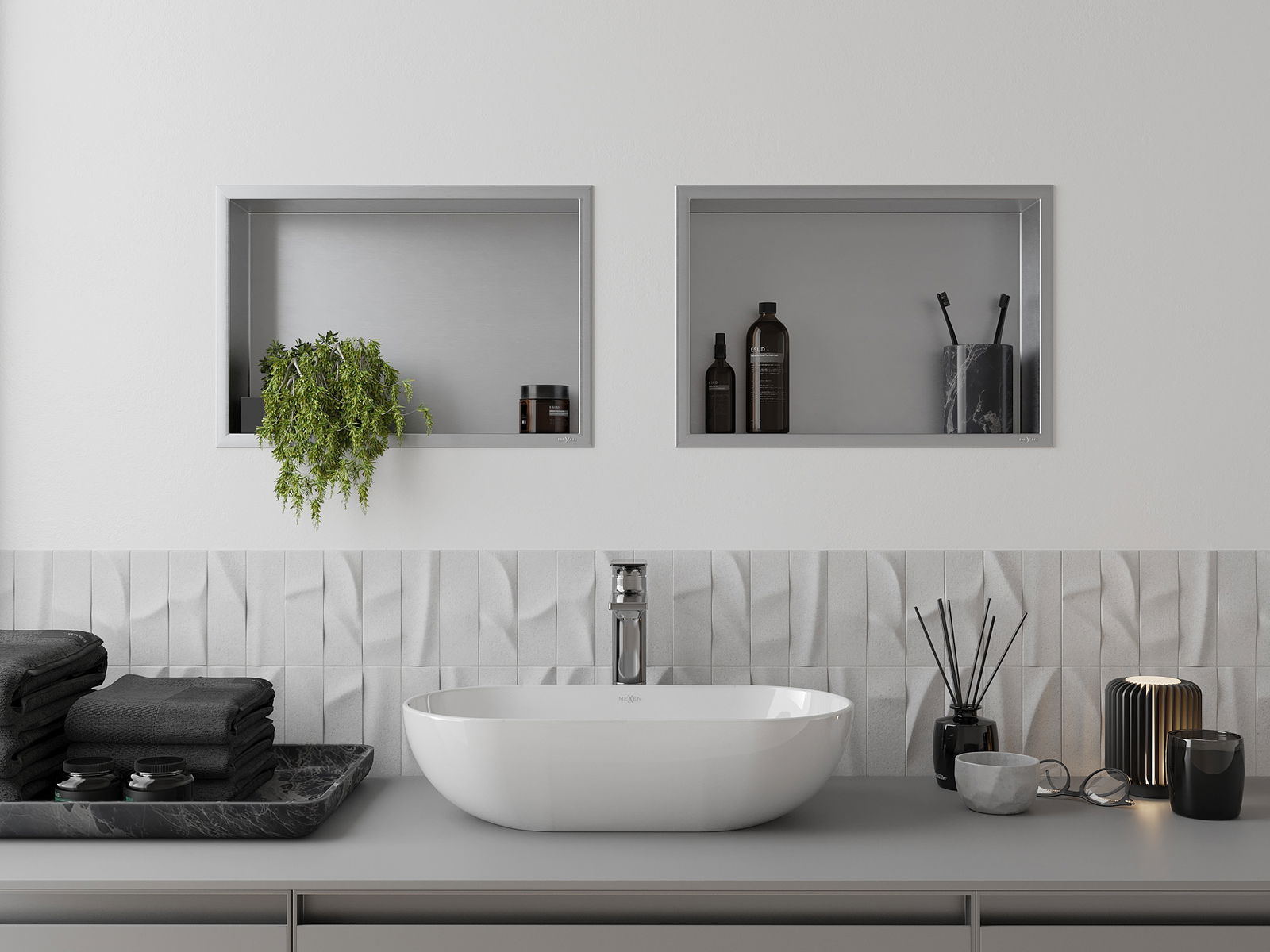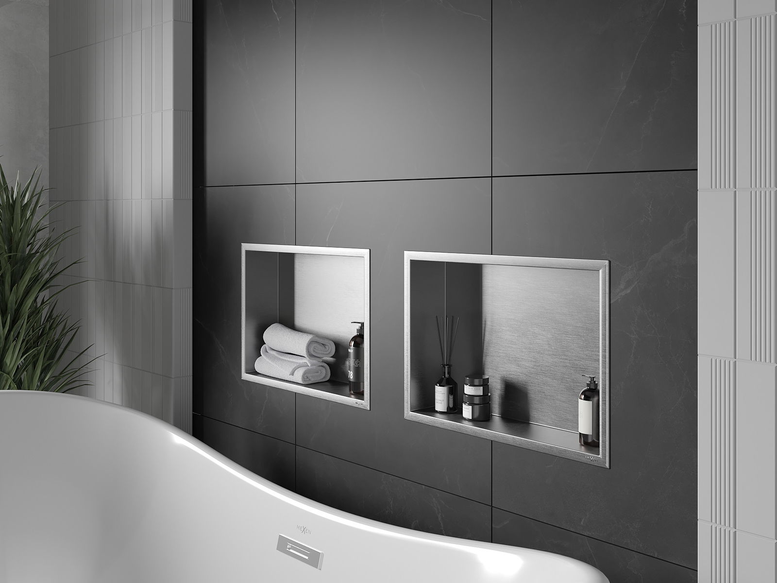 Možnost montáže ve zdi nebo ve speciálně připravené konstrukci. Je to mimořádně moderní a funkční řešení, umožňující ušetřit prostor a přizpůsobit produkt estetice interiéru a vytvořit jednotnou kompozici.