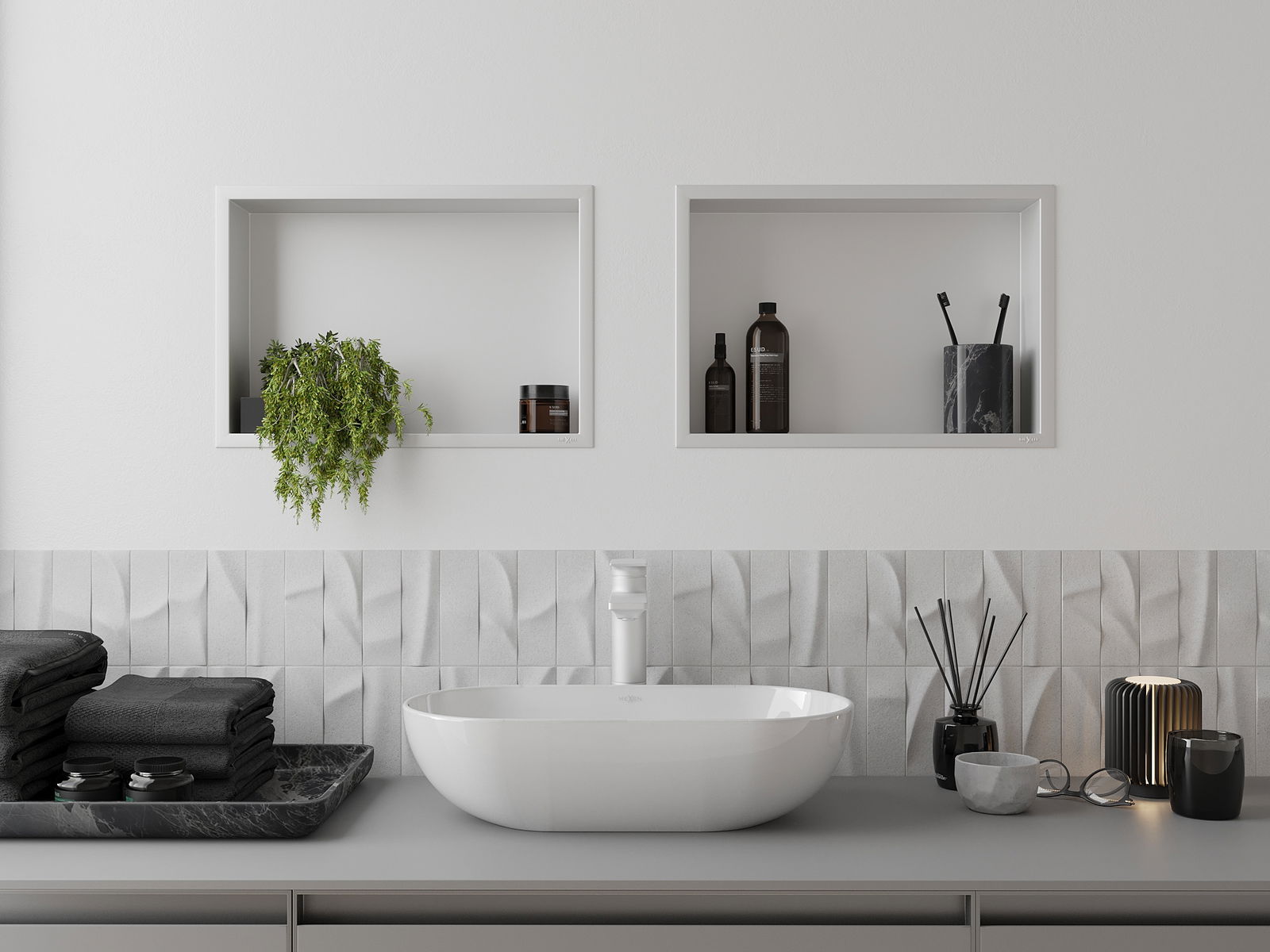 Možnost montáže ve zdi nebo ve speciálně připravené konstrukci. Je to mimořádně moderní a funkční řešení, umožňující ušetřit prostor a přizpůsobit produkt estetice interiéru a vytvořit jednotnou kompozici.
