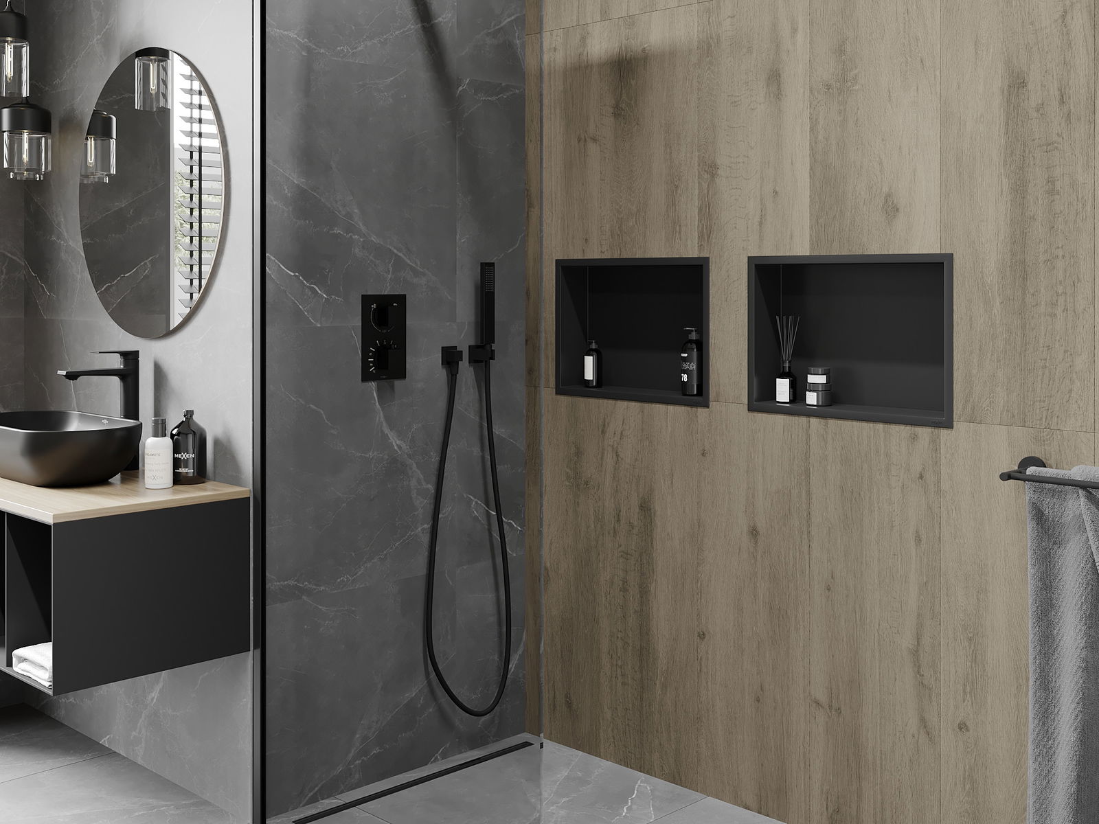 Možnost montáže ve zdi nebo ve speciálně připravené konstrukci. Je to mimořádně moderní a funkční řešení, umožňující ušetřit prostor a přizpůsobit produkt estetice interiéru a vytvořit jednotnou kompozici.