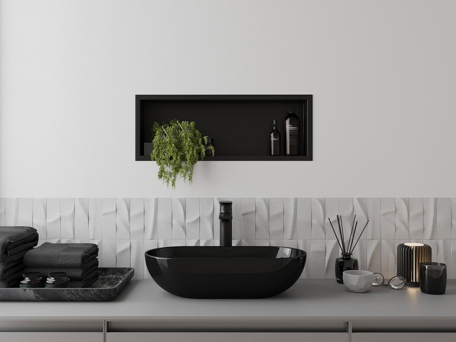 Možnost montáže ve zdi nebo ve speciálně připravené konstrukci. Je to mimořádně moderní a funkční řešení, umožňující ušetřit prostor a přizpůsobit produkt estetice interiéru a vytvořit jednotnou kompozici.