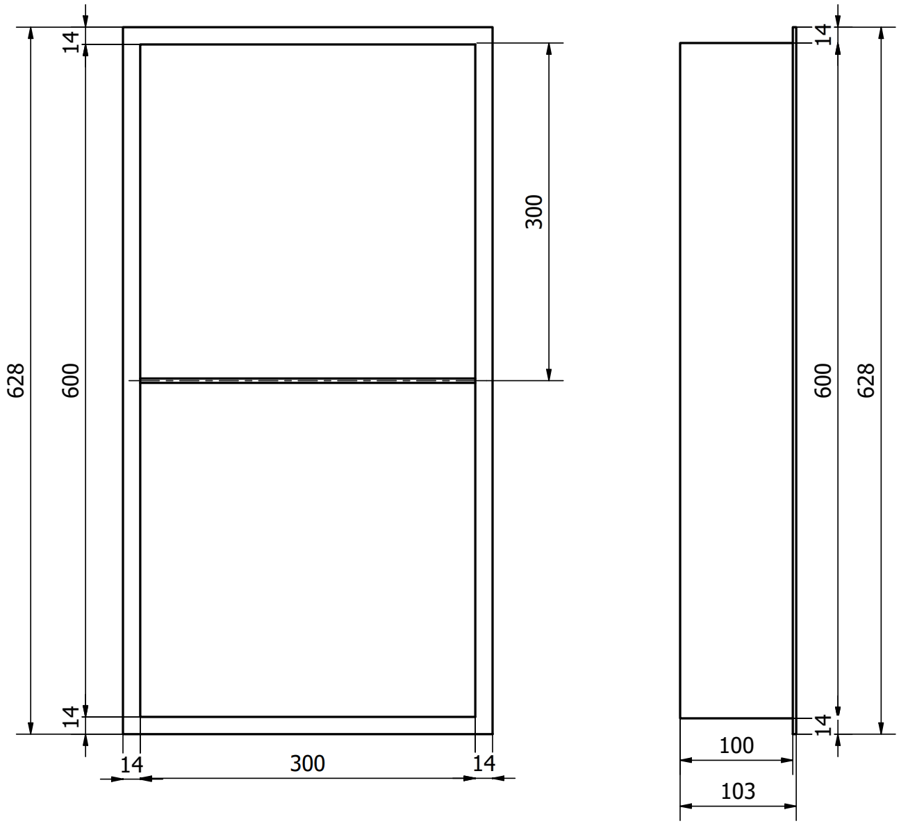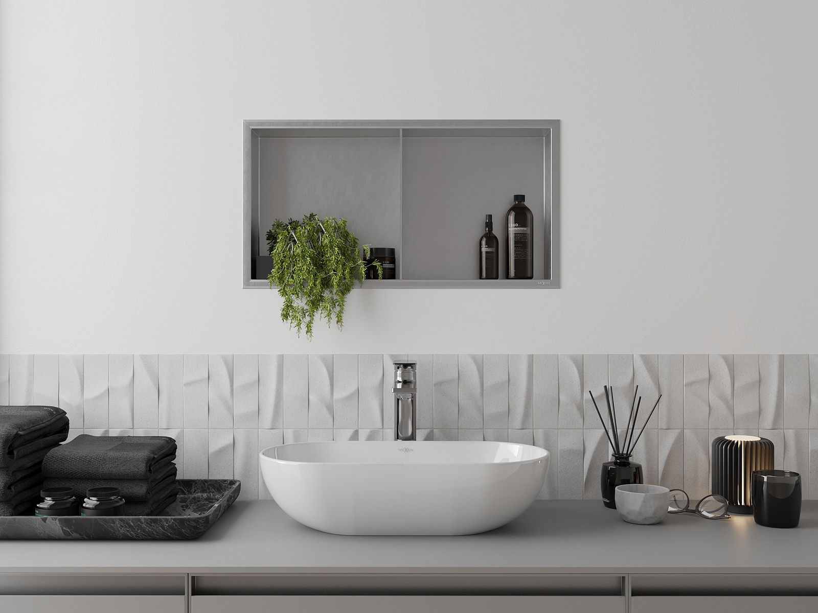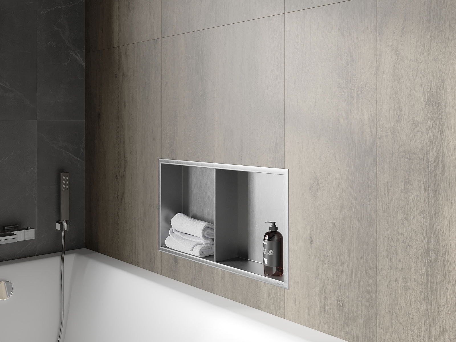 Mexen X-Wall-R vestavěná police s límcem a policí 60 x 30 cm, inox - 1910603010S