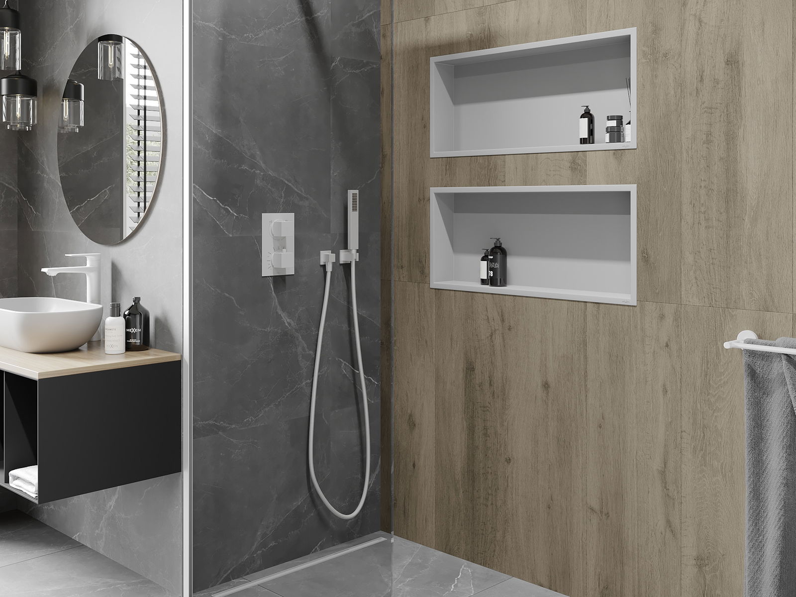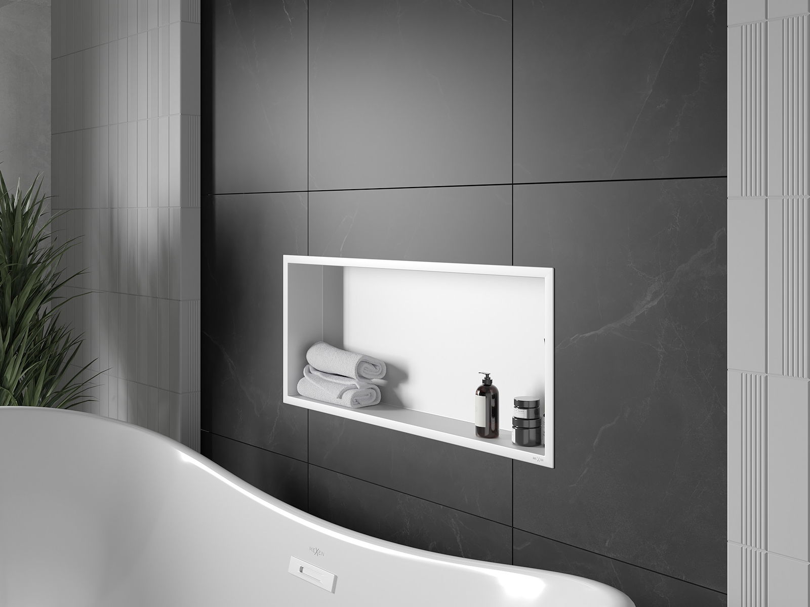 Možnost montáže ve zdi nebo ve speciálně připravené konstrukci. Je to mimořádně moderní a funkční řešení, umožňující ušetřit prostor a přizpůsobit produkt estetice interiéru a vytvořit jednotnou kompozici.
