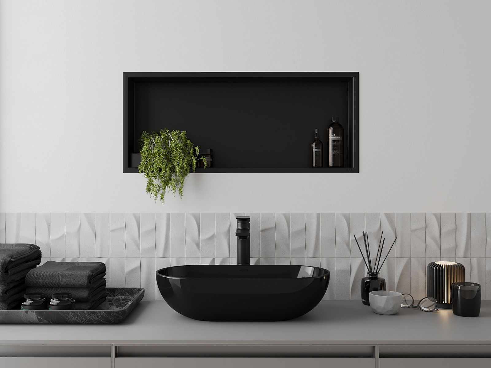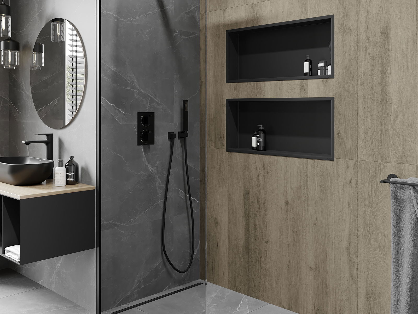 Možnost montáže ve zdi nebo ve speciálně připravené konstrukci. Je to mimořádně moderní a funkční řešení, umožňující ušetřit prostor a přizpůsobit produkt estetice interiéru a vytvořit jednotnou kompozici.