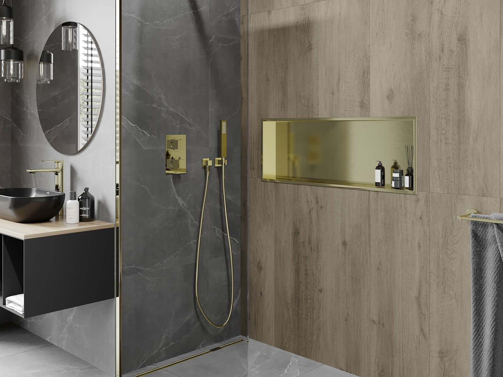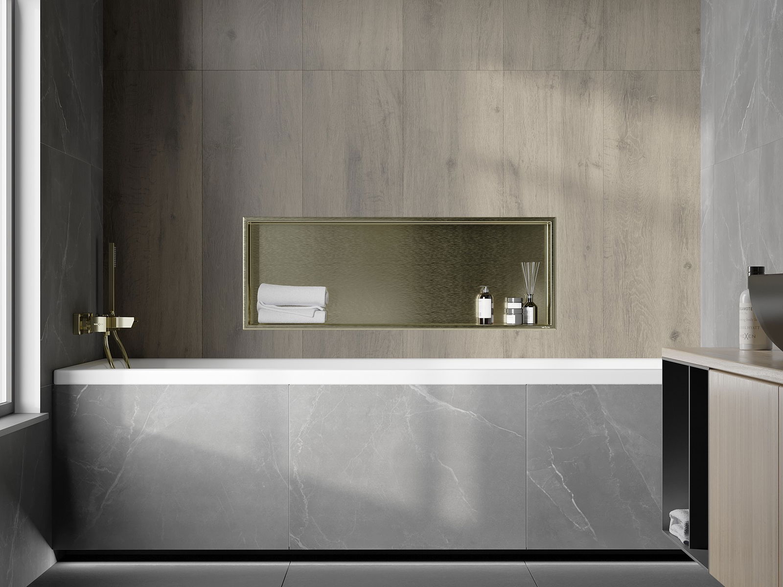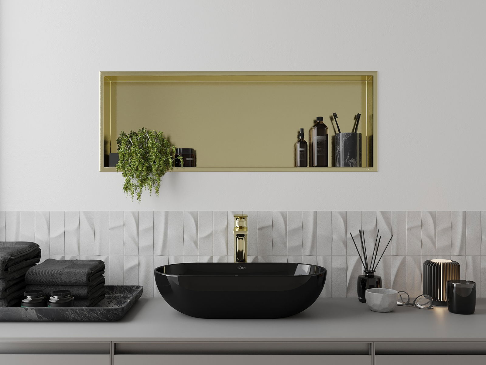 Mexen X-Wall-R výklenková police s lemem 90 x 30 cm, zlatá kartáčovaná - 1950903010