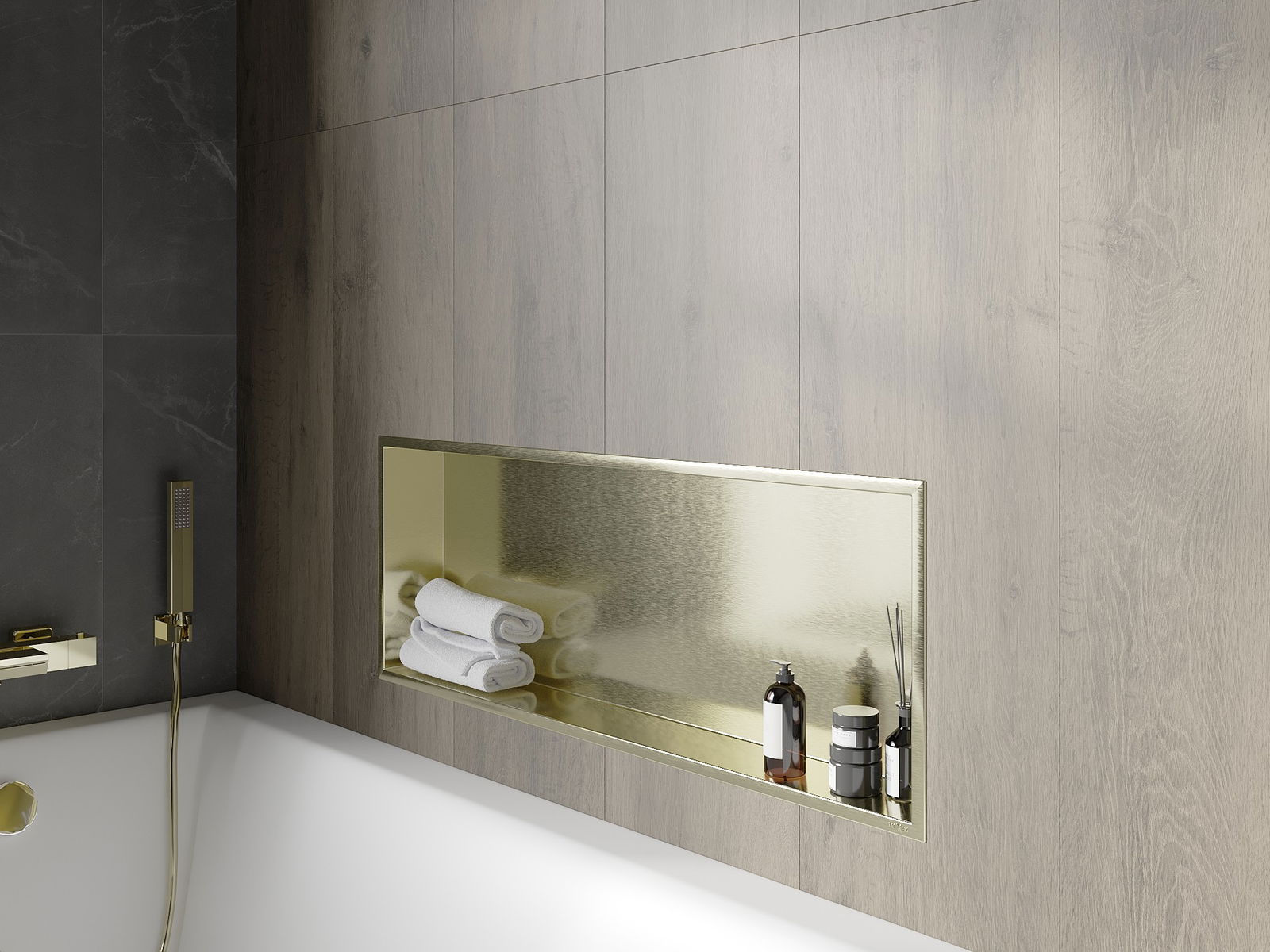 Možnost montáže ve zdi nebo ve speciálně připravené konstrukci. Je to mimořádně moderní a funkční řešení, umožňující ušetřit prostor a přizpůsobit produkt estetice interiéru a vytvořit jednotnou kompozici.
