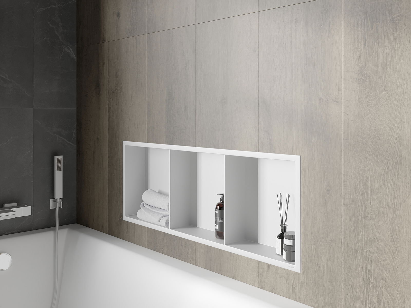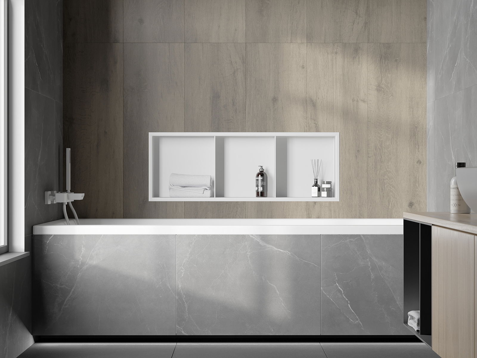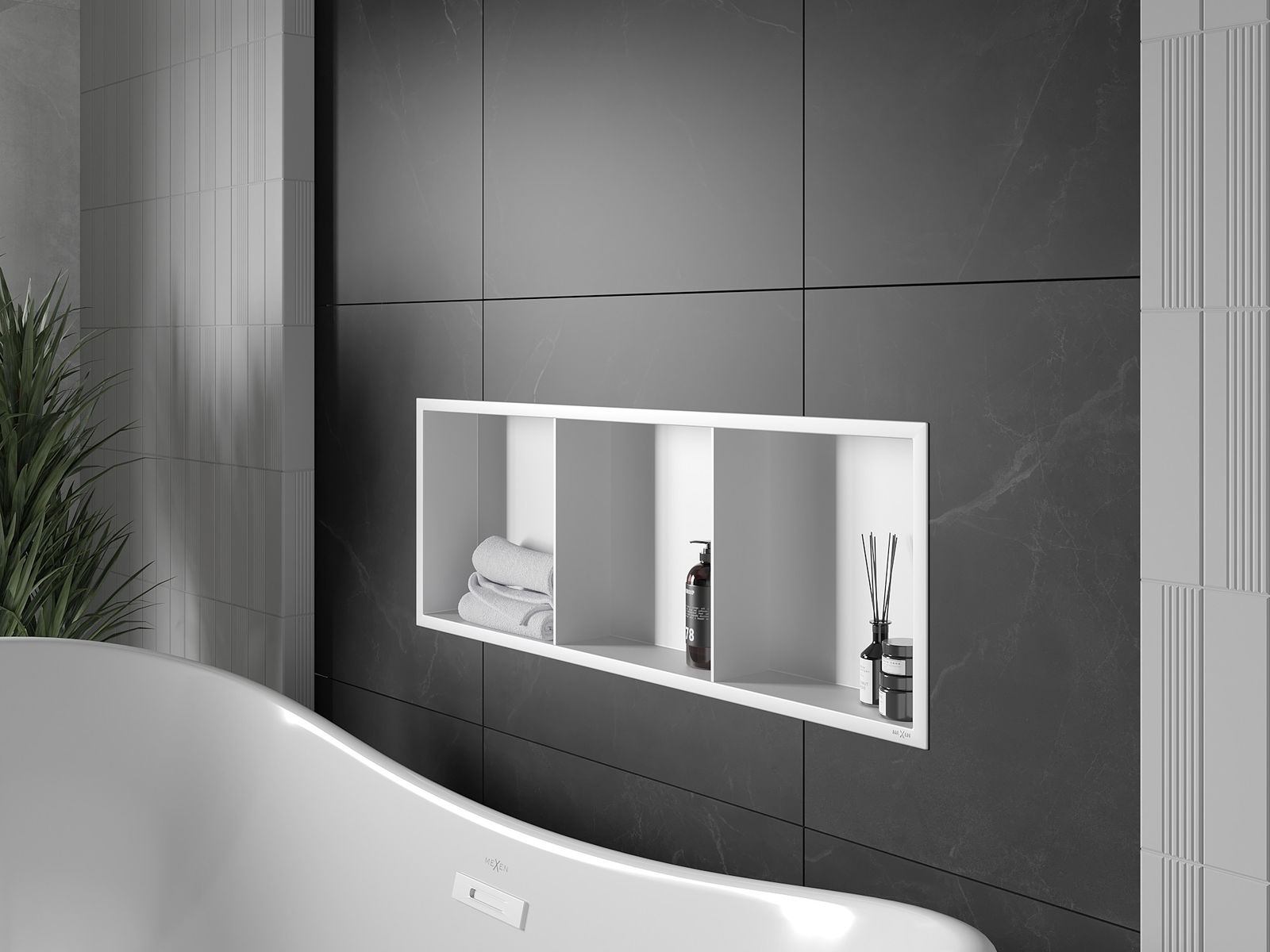 Možnost montáže ve zdi nebo ve speciálně připravené konstrukci. Je to mimořádně moderní a funkční řešení, umožňující ušetřit prostor a přizpůsobit produkt estetice interiéru a vytvořit jednotnou kompozici.