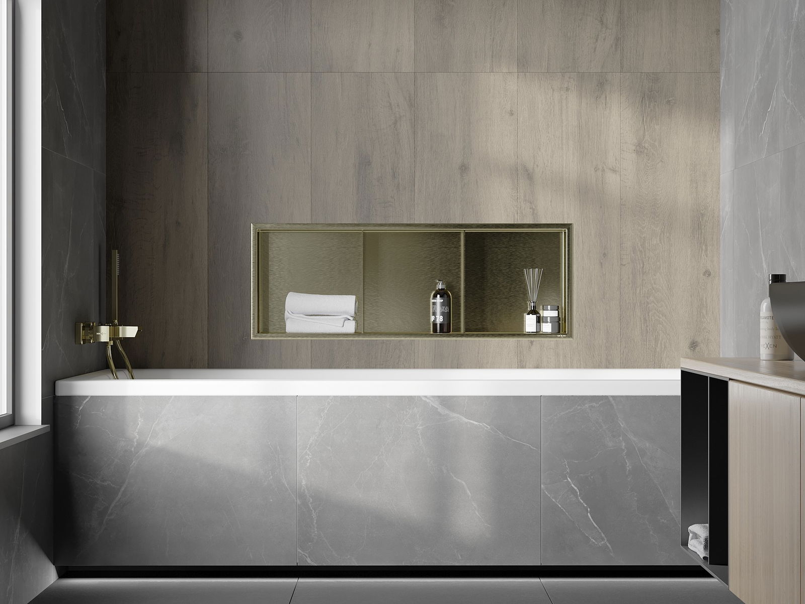 Možnost montáže ve zdi nebo ve speciálně připravené konstrukci. Je to mimořádně moderní a funkční řešení, umožňující ušetřit prostor a přizpůsobit produkt estetice interiéru a vytvořit jednotnou kompozici.