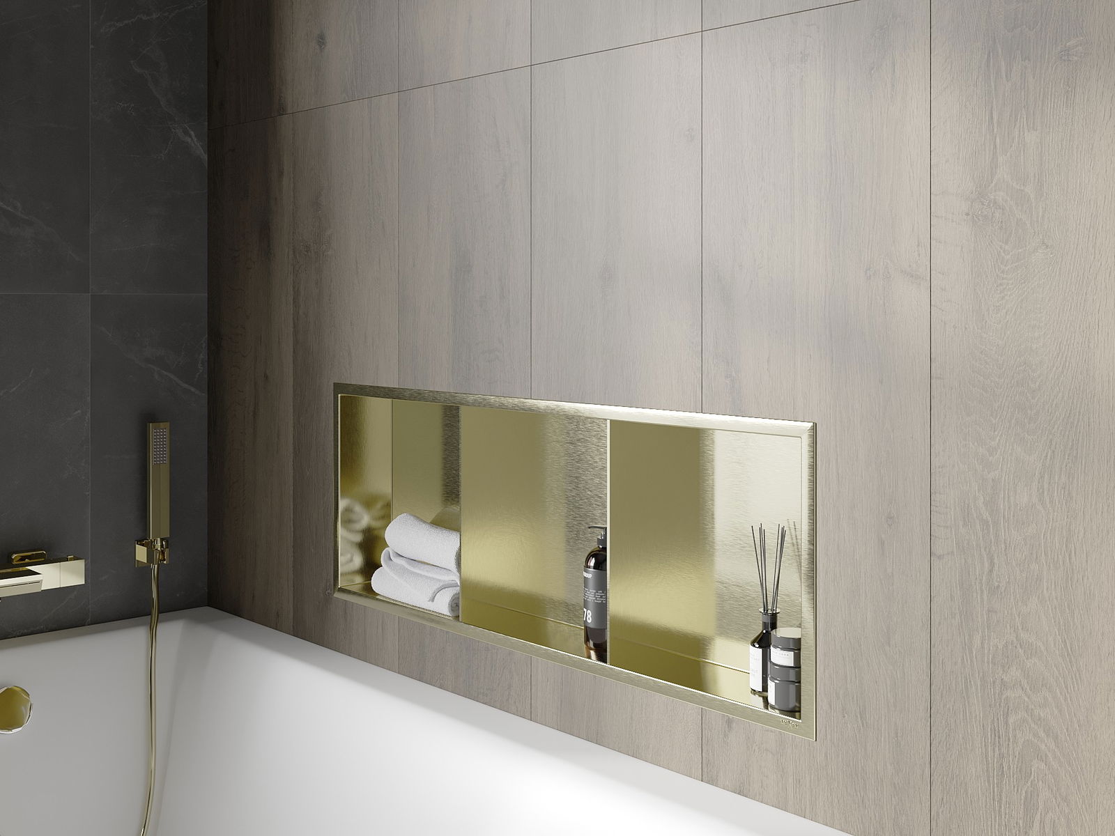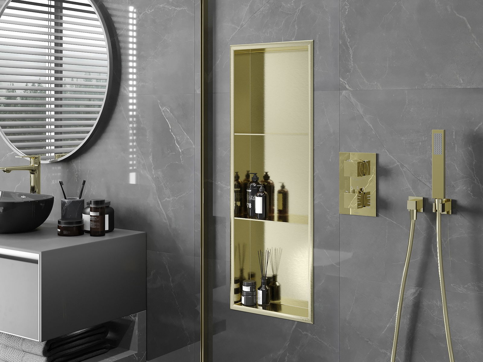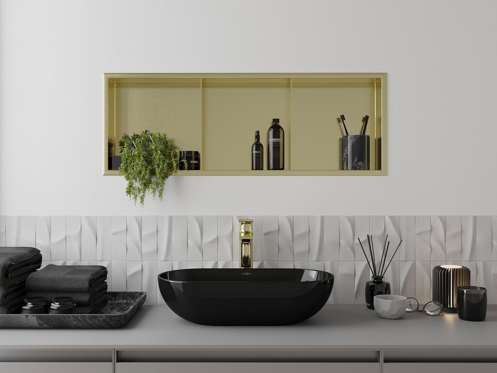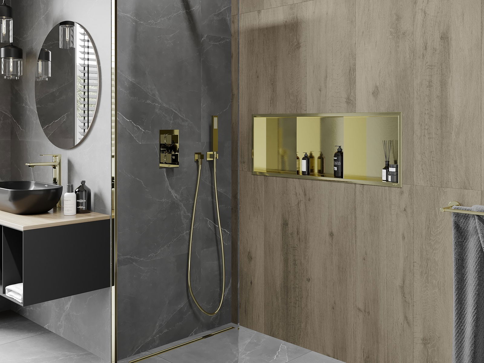 Mexen X-Wall-R nástěnná police s límcem a policí 90 x 30 cm, zlatá kartáčovaná - 1950903010S
