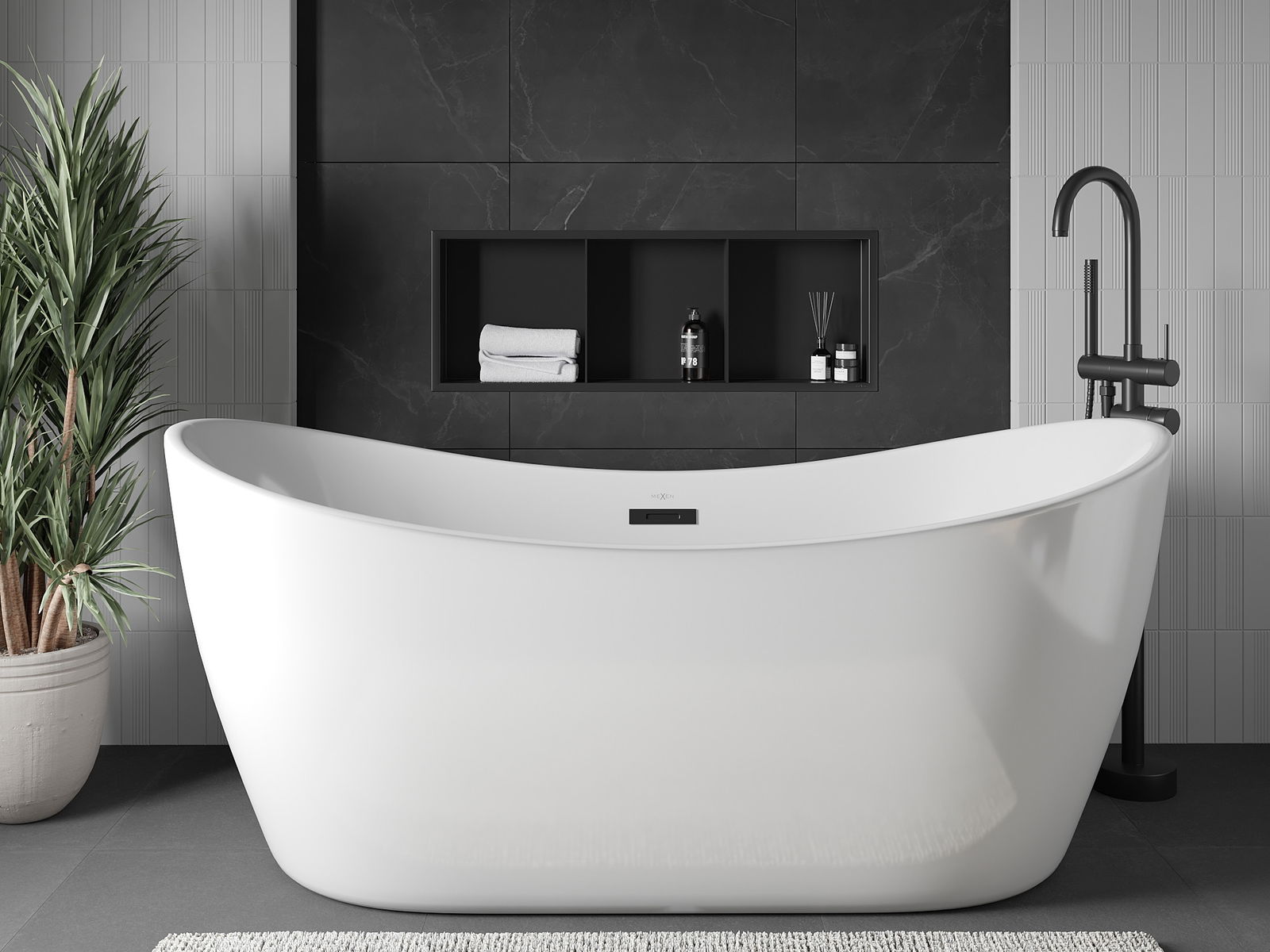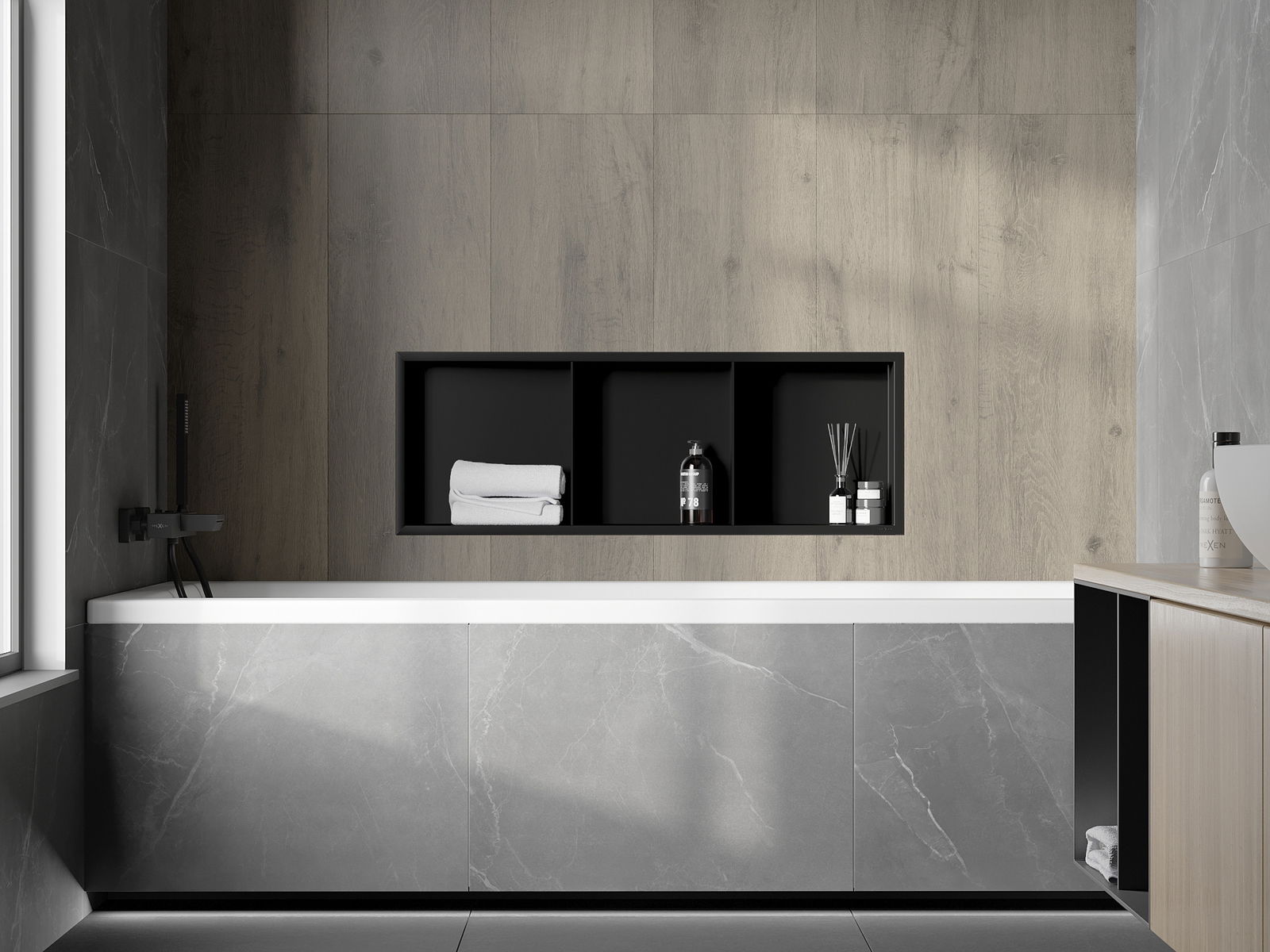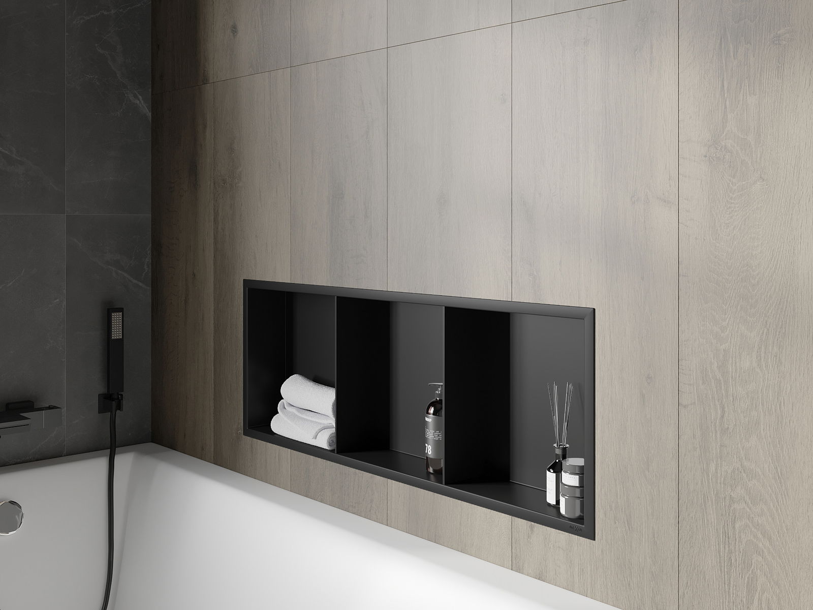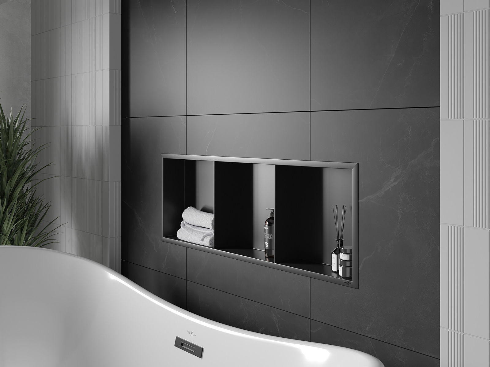 Mexen X-Wall-R výklenková police s límcem a poličkou 90 x 30 cm, černá - 1970903010S