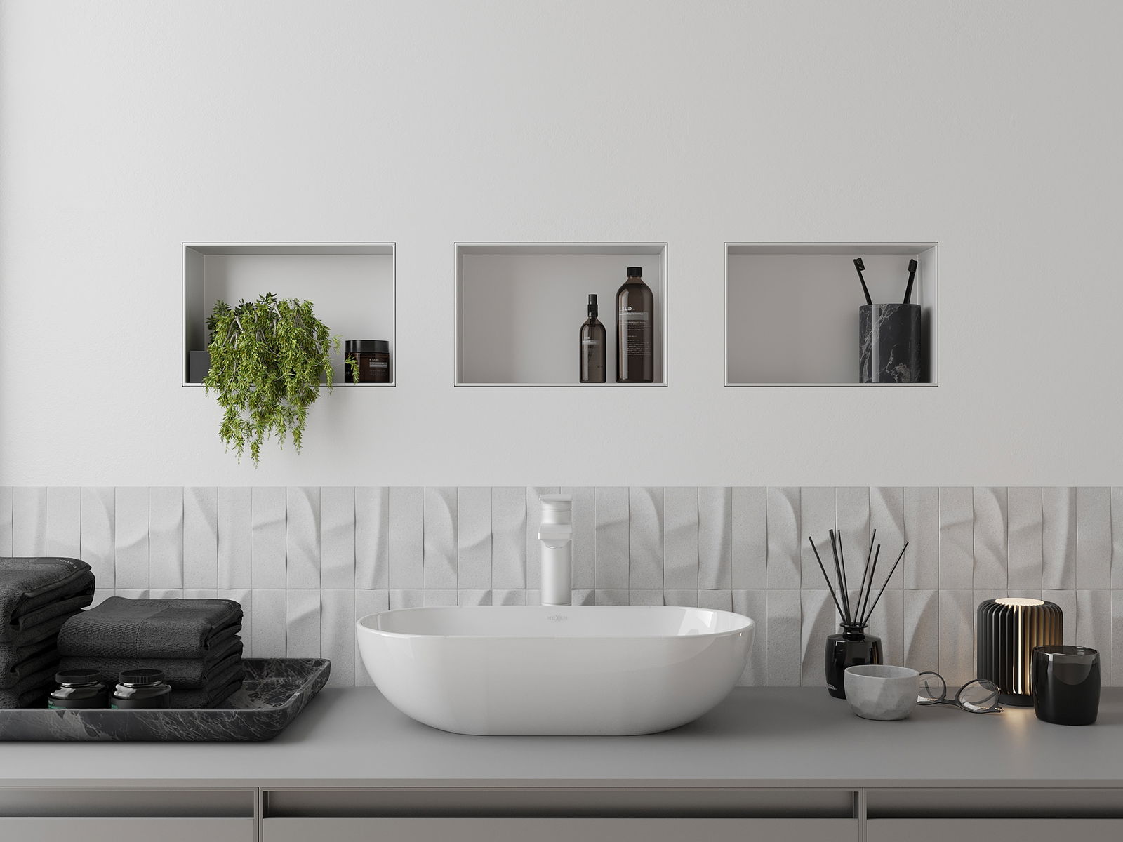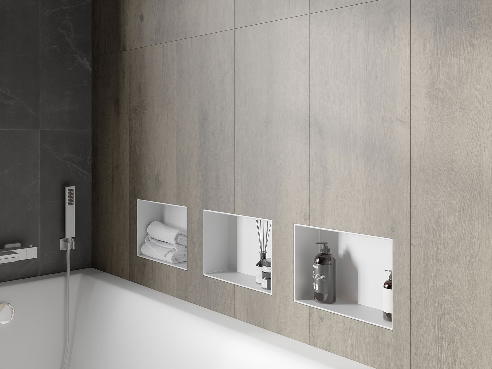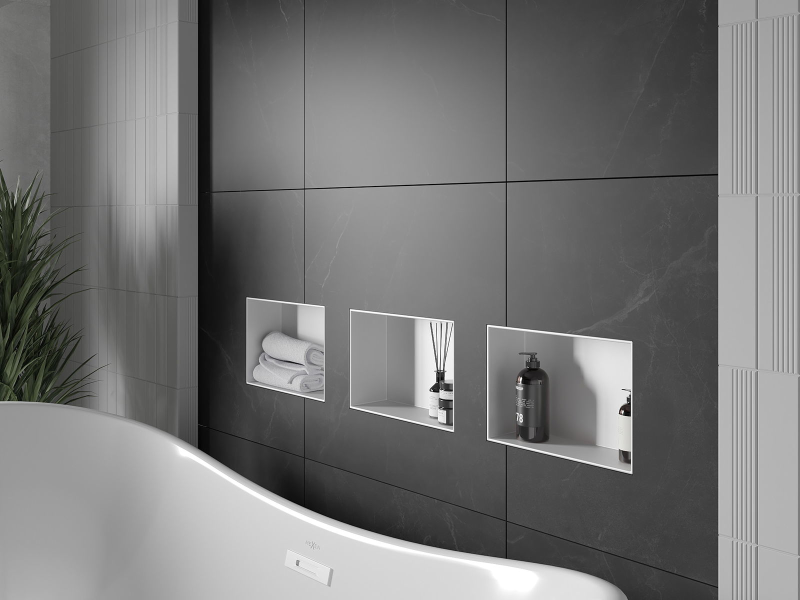 Možnost montáže ve zdi nebo ve speciálně připravené konstrukci. Je to mimořádně moderní a funkční řešení, umožňující ušetřit prostor a přizpůsobit produkt estetice interiéru a vytvořit jednotnou kompozici.