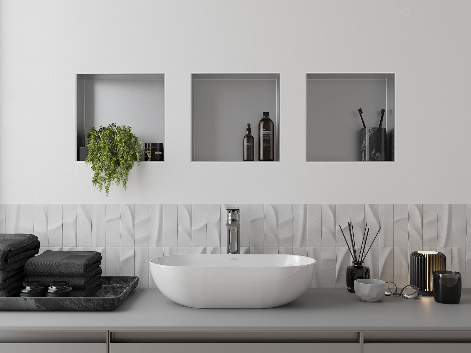Možnost montáže ve zdi nebo ve speciálně připravené konstrukci. Je to mimořádně moderní a funkční řešení, umožňující ušetřit prostor a přizpůsobit produkt estetice interiéru a vytvořit jednotnou kompozici.