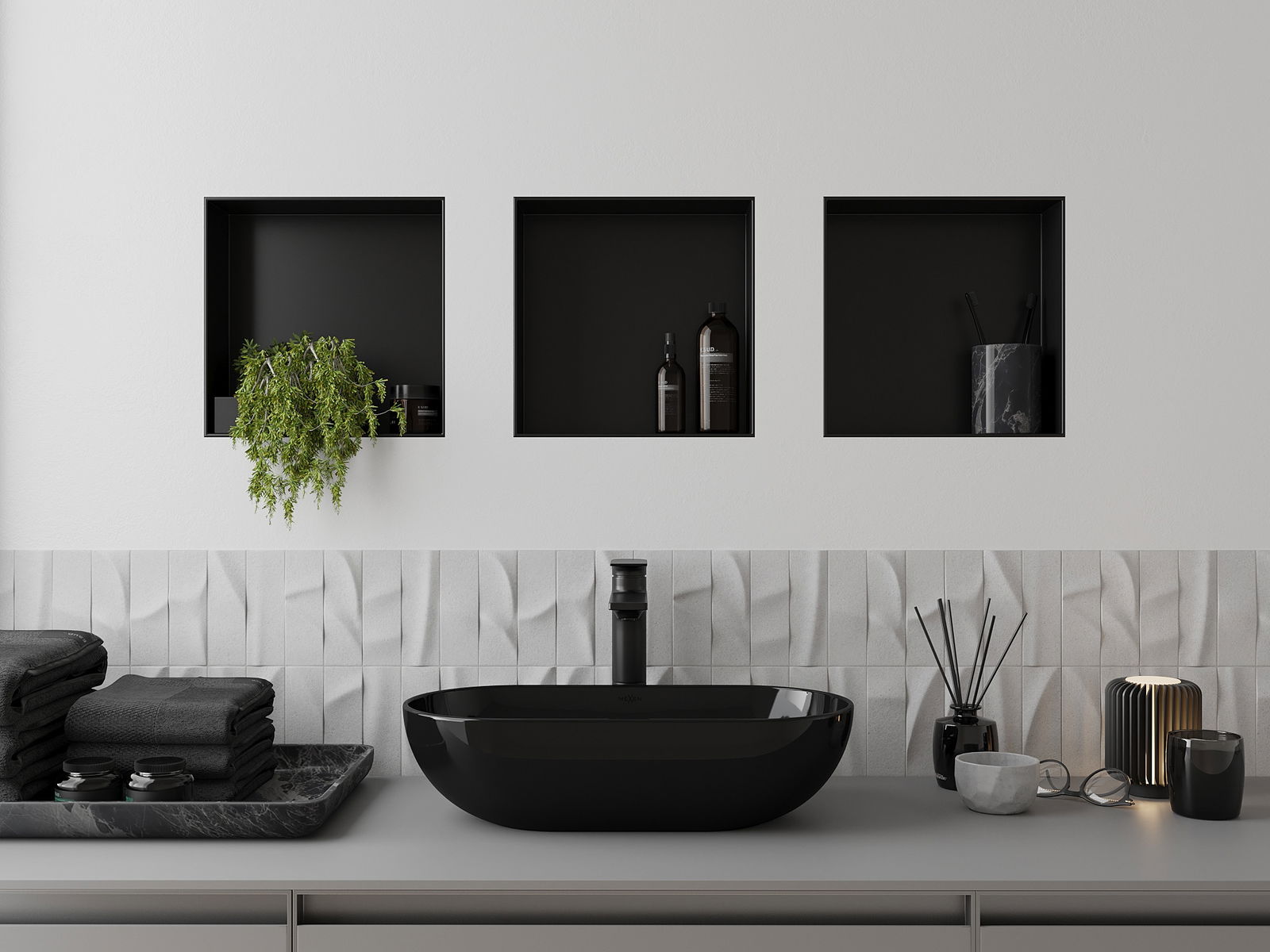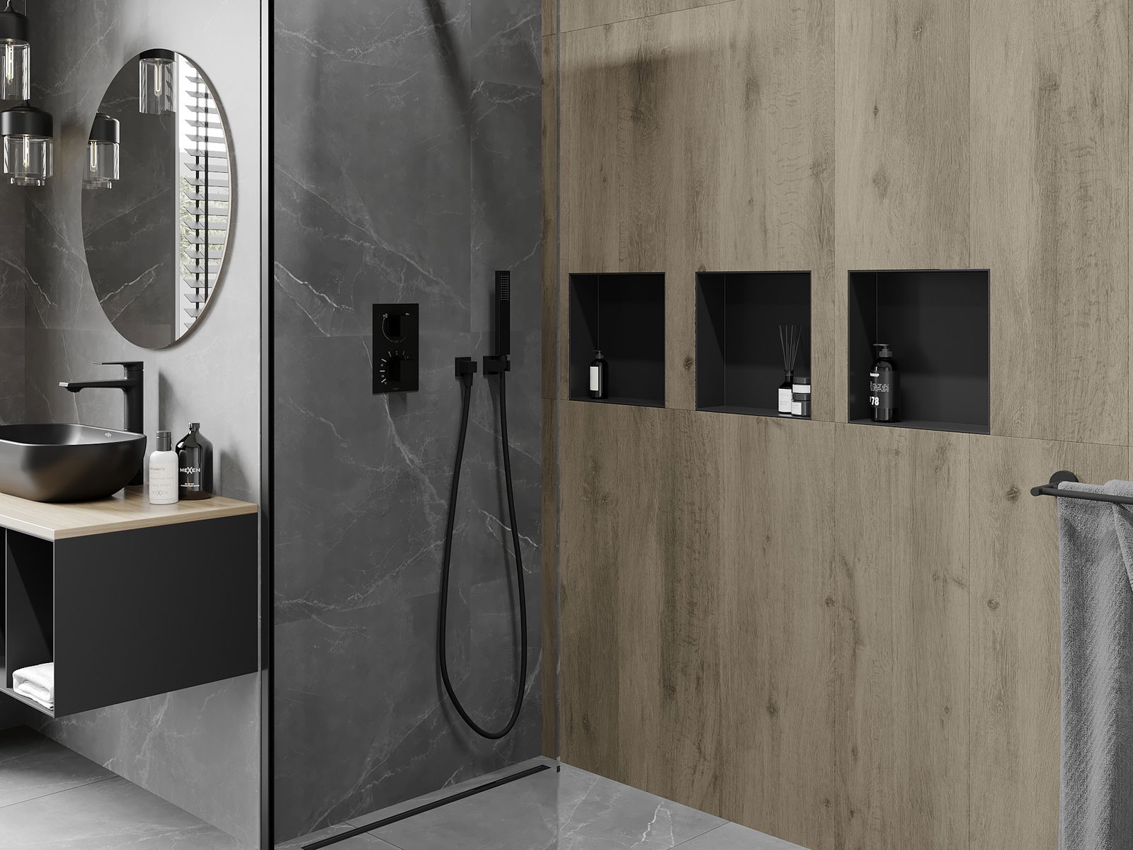 Možnost montáže ve zdi nebo ve speciálně připravené konstrukci. Je to mimořádně moderní a funkční řešení, umožňující ušetřit prostor a přizpůsobit produkt estetice interiéru a vytvořit jednotnou kompozici.