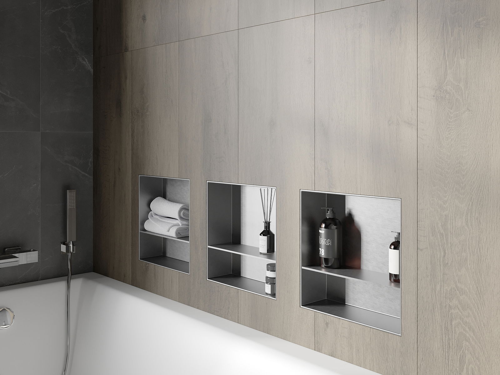 Možnost montáže ve zdi nebo ve speciálně připravené konstrukci. Je to mimořádně moderní a funkční řešení, umožňující ušetřit prostor a přizpůsobit produkt estetice interiéru a vytvořit jednotnou kompozici.