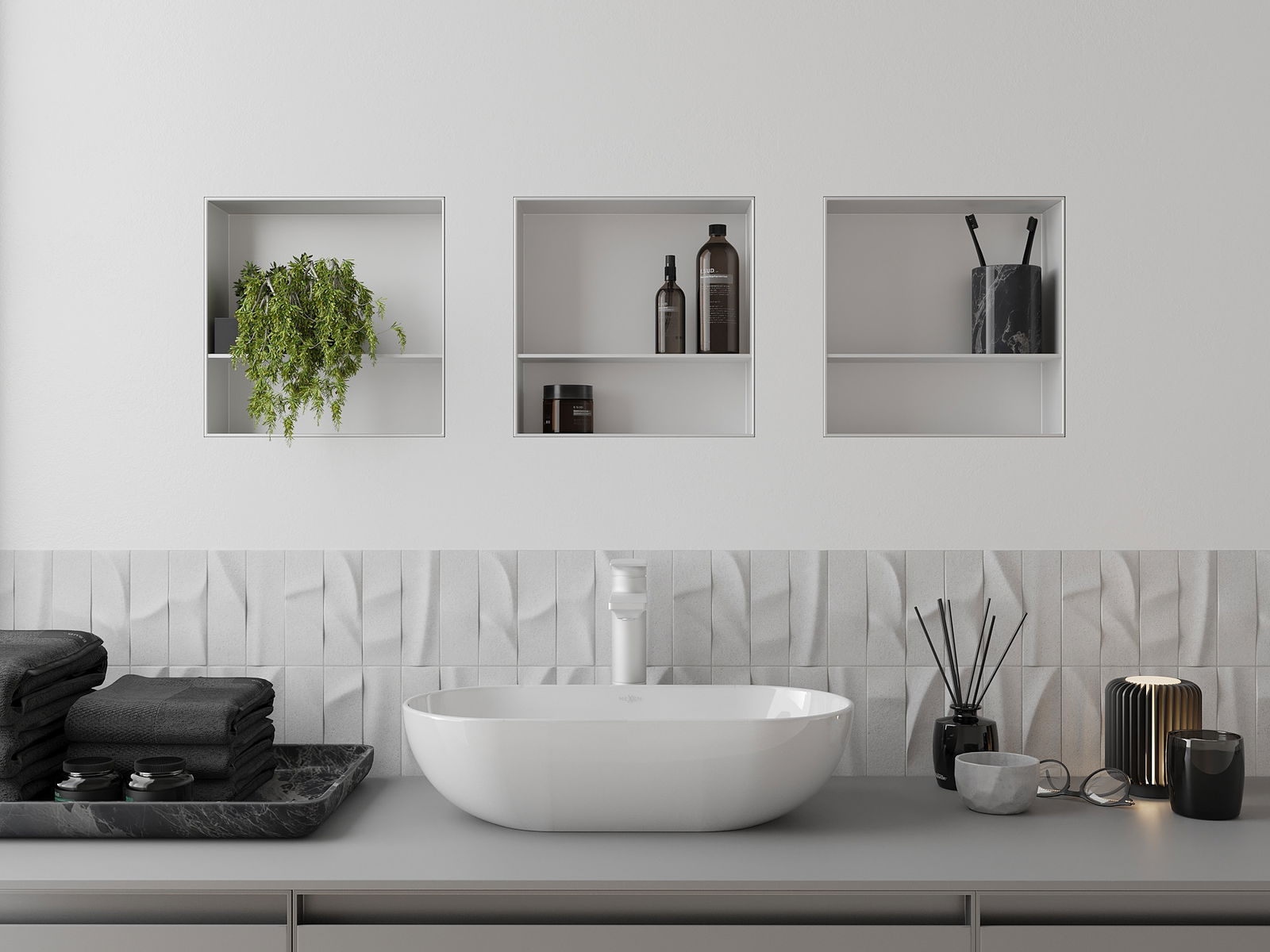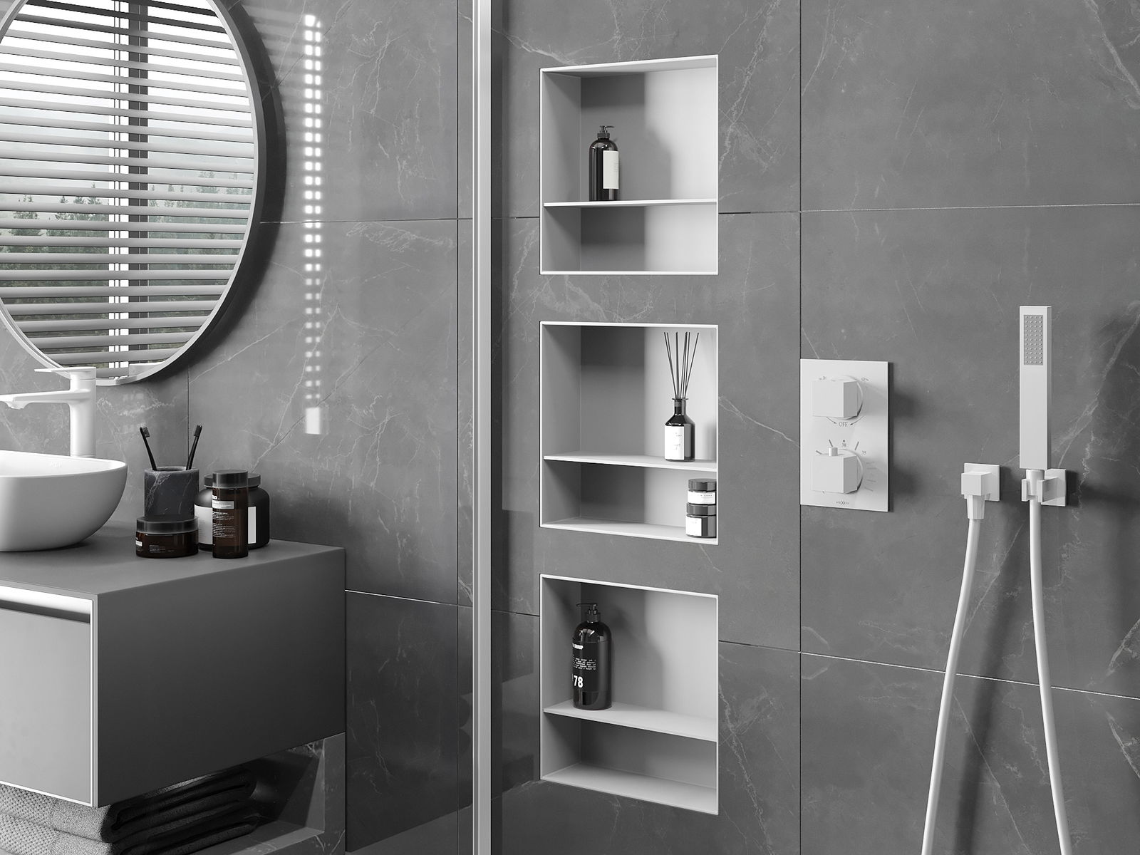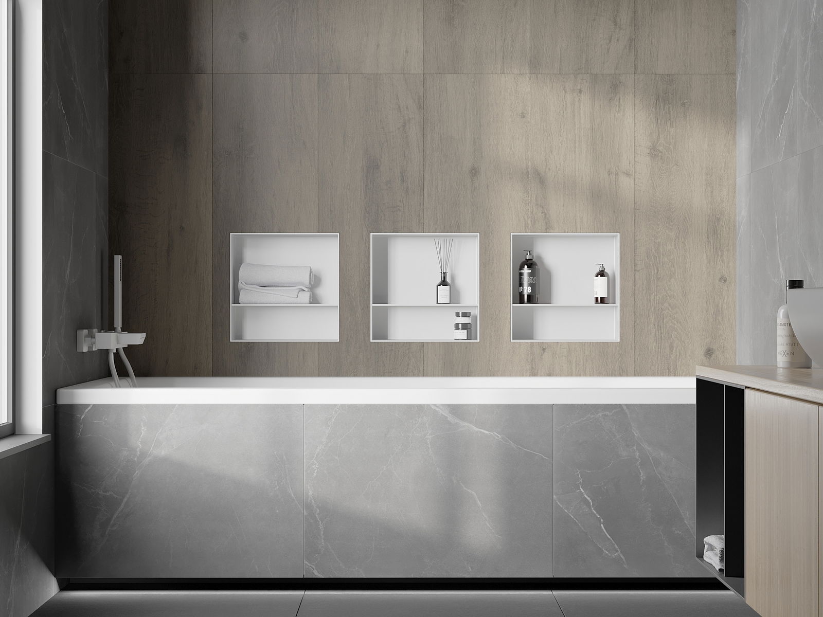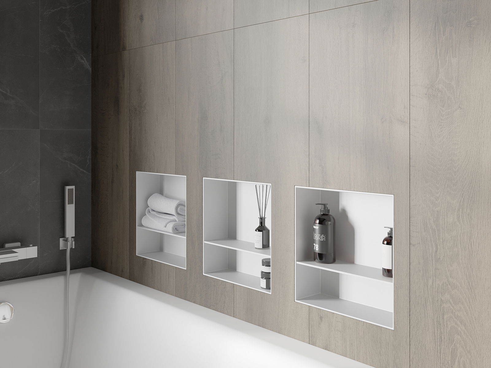 Možnost montáže ve zdi nebo ve speciálně připravené konstrukci. Je to mimořádně moderní a funkční řešení, umožňující ušetřit prostor a přizpůsobit produkt estetice interiéru a vytvořit jednotnou kompozici.
