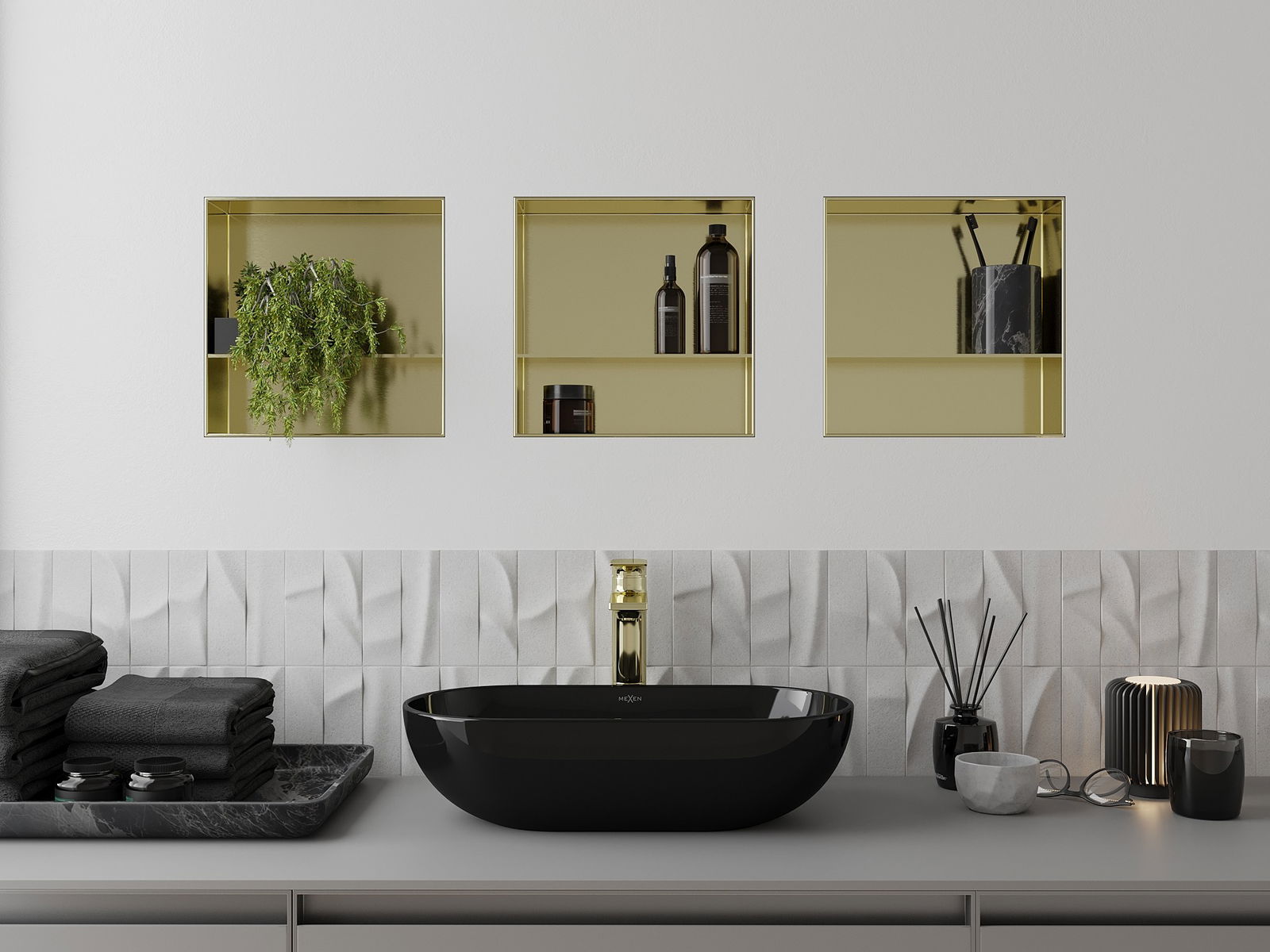 Mexen X-Wall-NR nástěnná bez lemové police s policí 30 x 30 cm, zlatě kartáčovaná - 1951303010S
