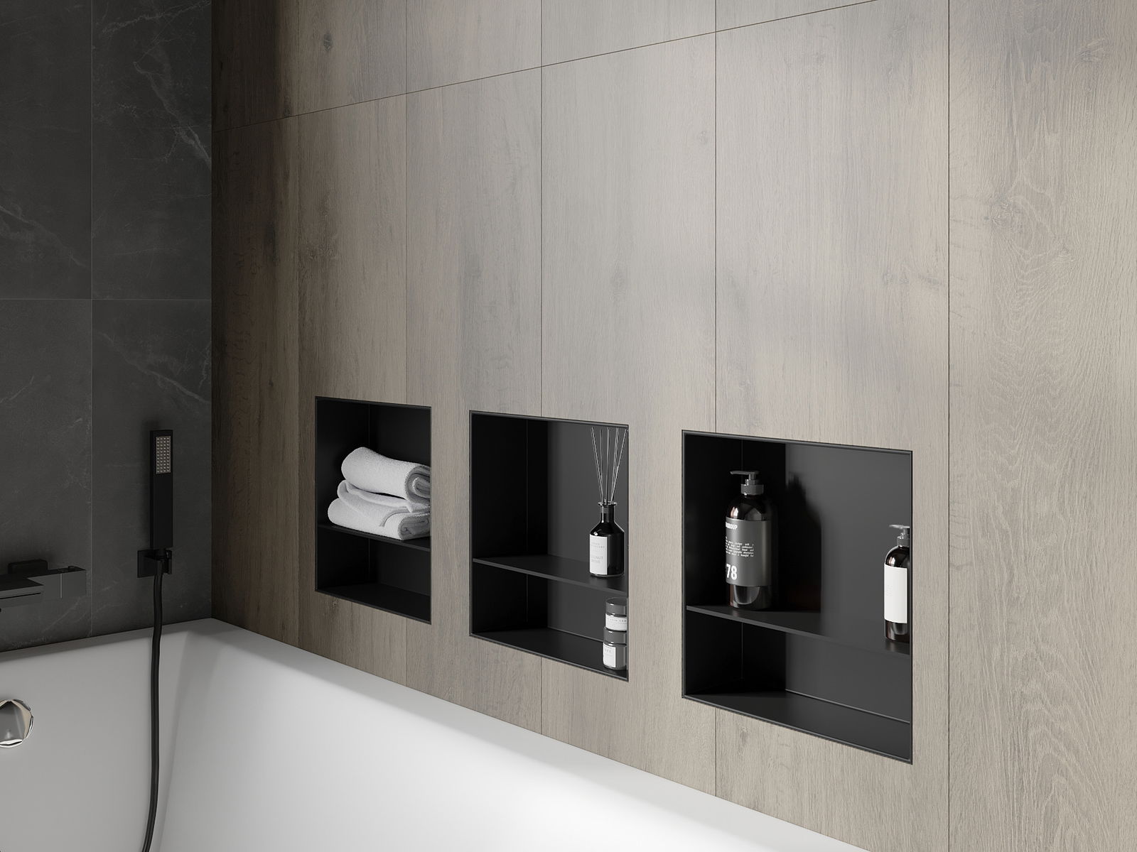 Mexen X-Wall-NR zapuštěná police bez obruby s policí 30 x 30 cm, černá - 1971303010S
