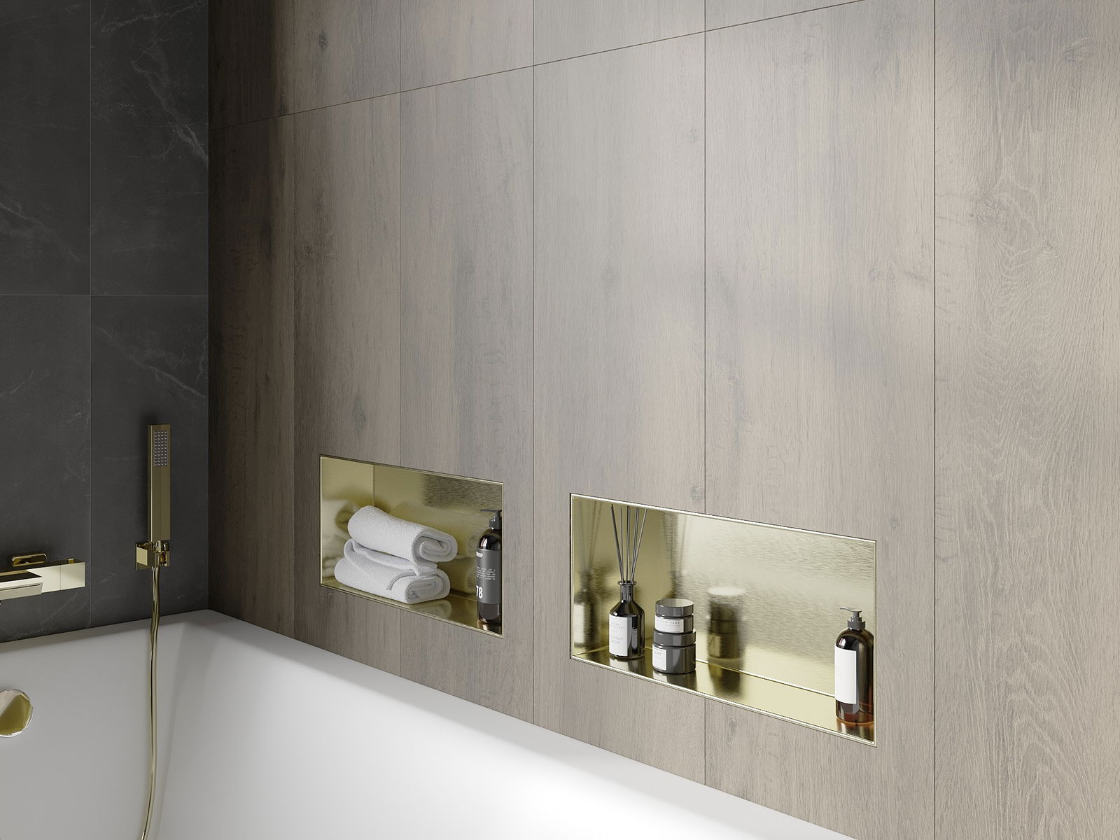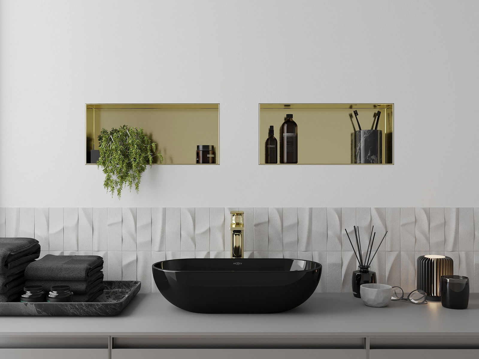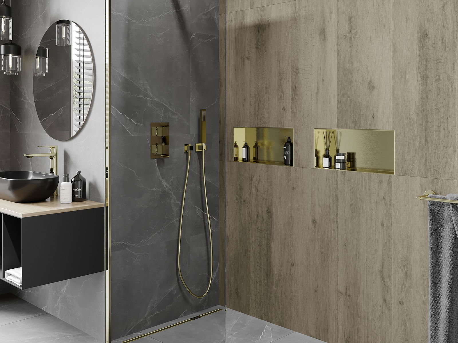 Mexen X-Wall-NR police do výklenku bez lemu 45 x 20 cm, zlatá kartáčovaná - 1951452010